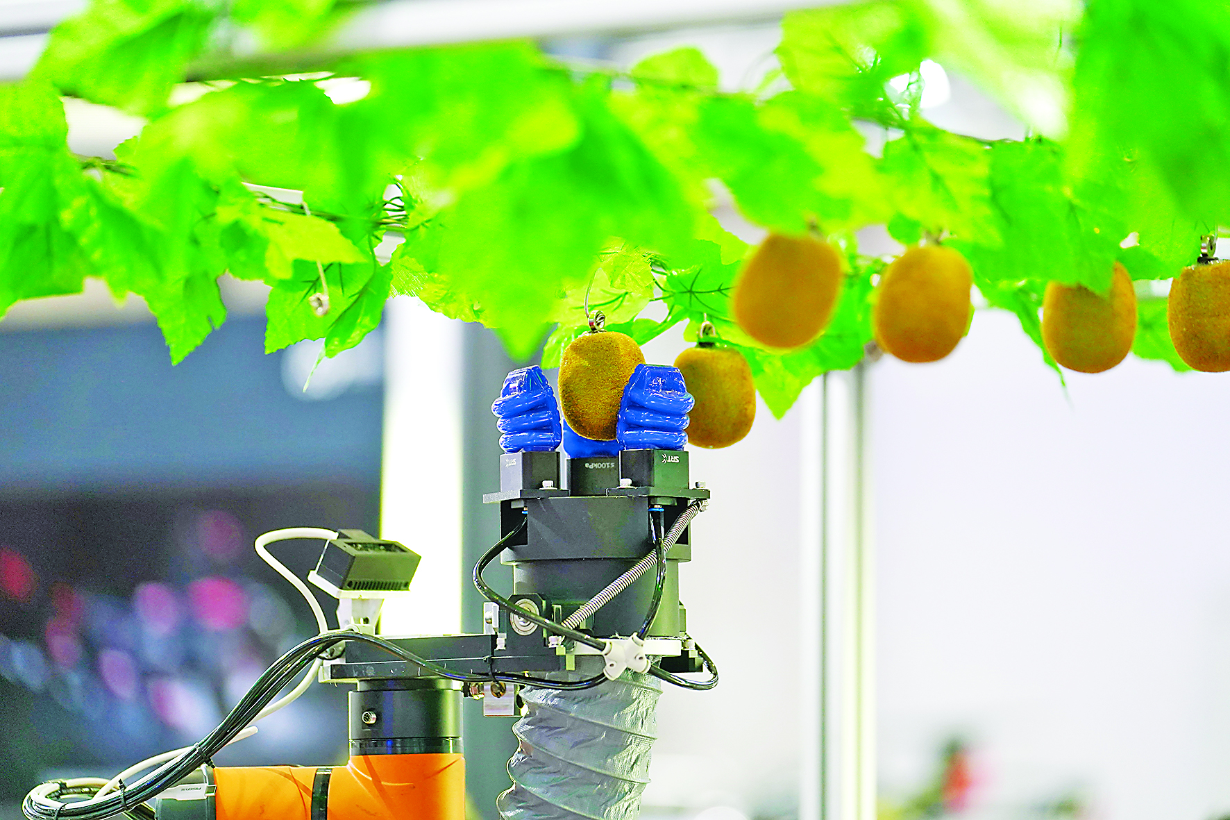 这是在2022世界机器人博览会“机器人+农业”区域展示的一款智能采摘机器人(8月18日摄)。