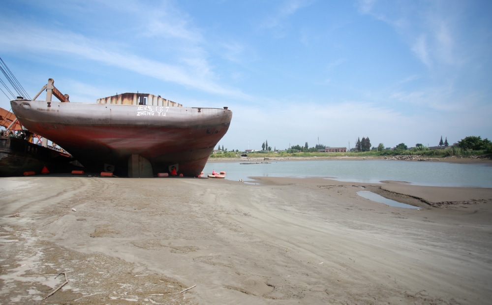 近日,受降水偏少及持续高温影响,长江进入主汛期后水位持续退落,长江江都段出现“汛期反枯”的现象。