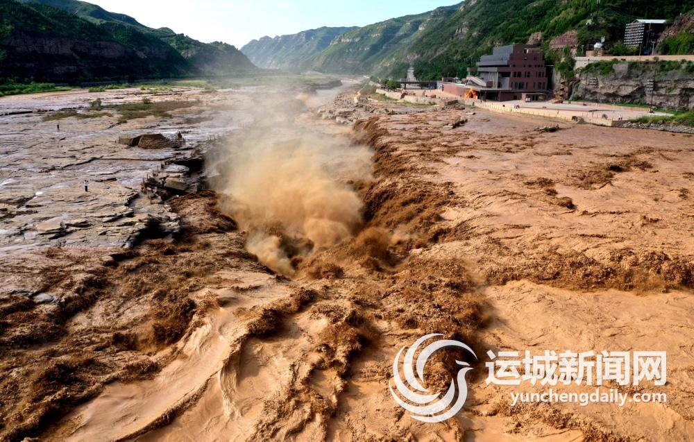 近日,受强降雨天气影响,位于晋陕两省交界的黄河壶口瀑布迎来今年入汛以来最大洪水,每秒流量超过4500立方米。为了确保游客安全,山西吉县壶口瀑布景区于8月22日16时起采取临时关闭措施。 新华社发(吕桂明 摄)