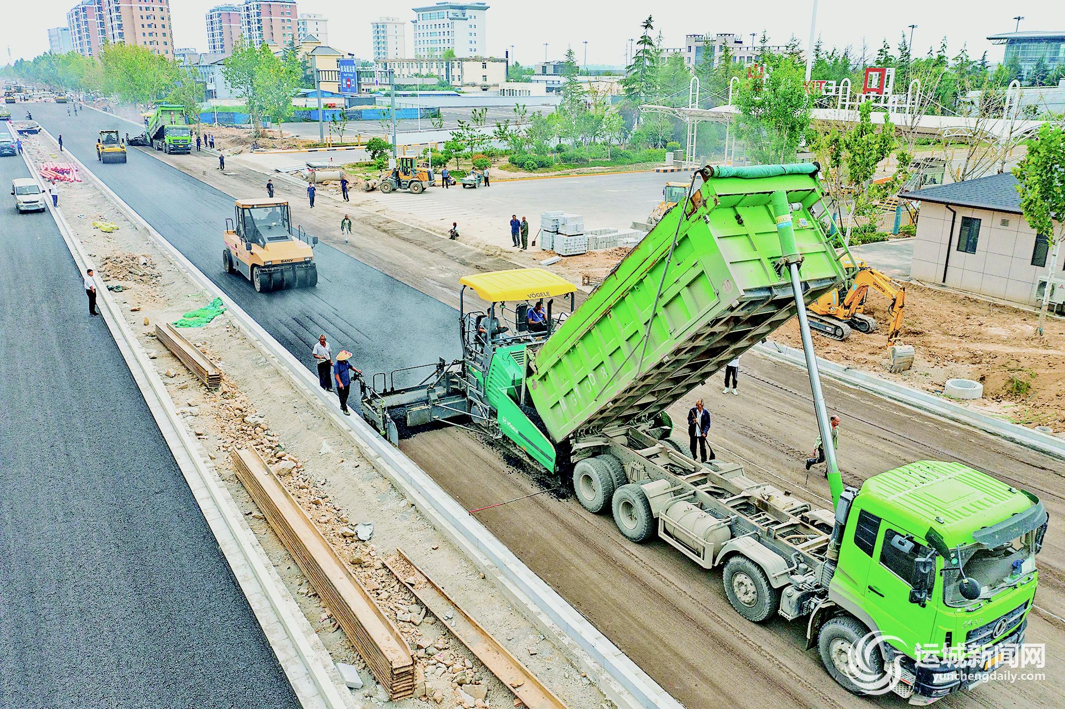 舜帝街东延改扩建道路工程项目西起安邑东路,东至运三高速东220米处,全长约770米,双向8车道,总投资约2.7亿元。截至目前,主路面已开始铺油作业。