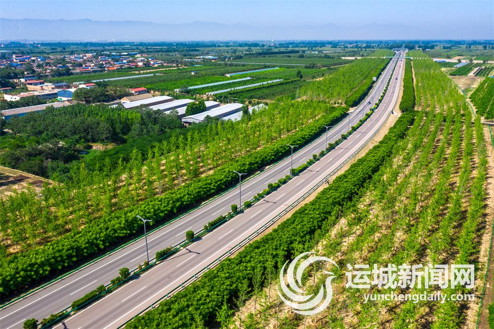 出高速运城西口一路向市区前行,道路两旁园林景观简洁大气、造型优美,1万余棵银杏和金枝槐,在道路两旁形成了万木吐翠的美丽景观。如果说,高速运城西口的绿化是简单大方,那么高速运城南口的绿化就是立体精致,从西侧的小游园入口放眼望去,银杏、白蜡木、白皮松、红叶石楠等绿植错落有致,深绿、浅绿、金黄、深褐等颜色交相辉映。用黄栌、雪松、白皮松、国槐等树木精心绿化后的高速运城东口,视野开阔、层次分明。