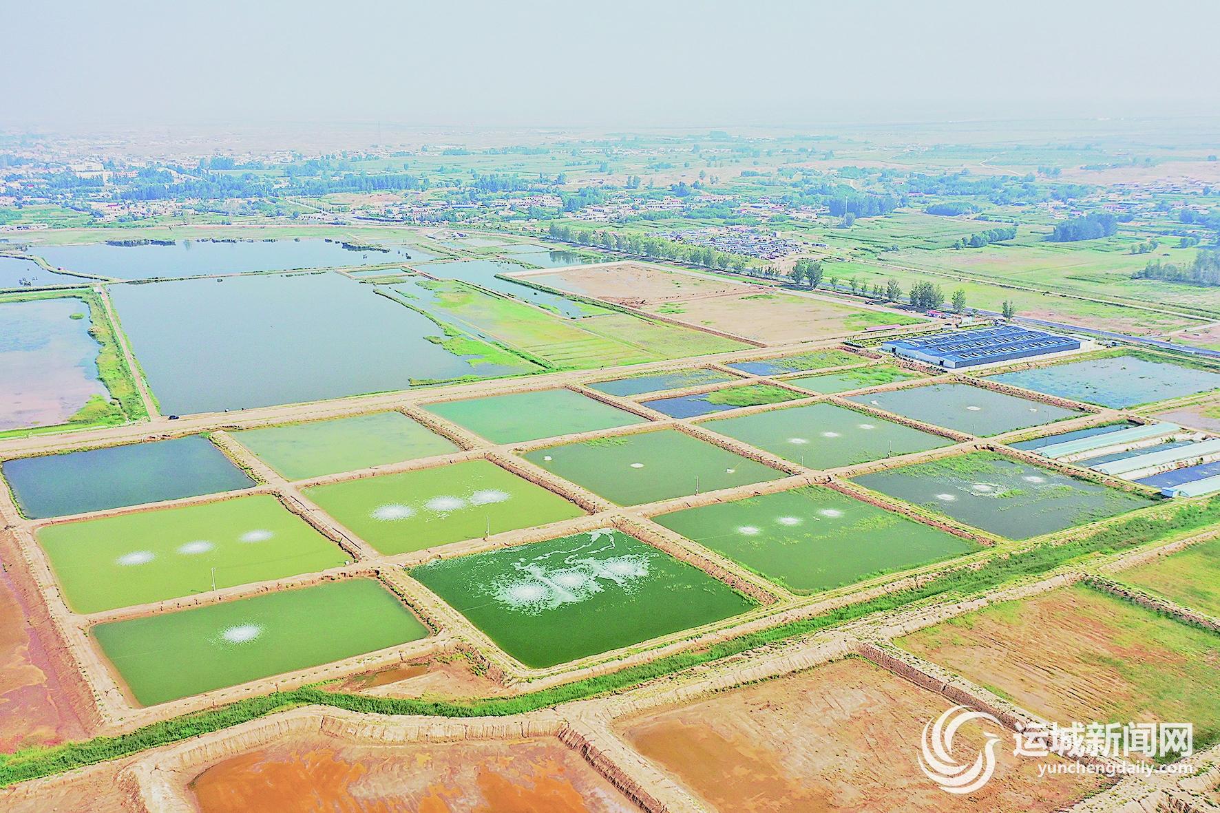 俯瞰乌海市盐碱水对虾养殖园区的虾田(8月25日摄)。