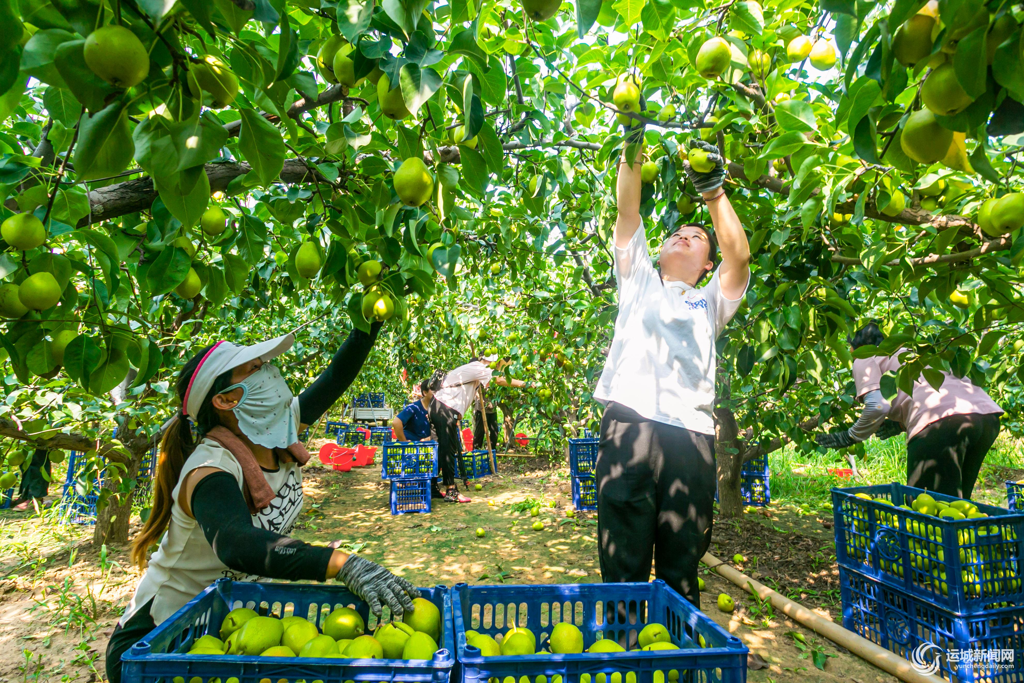 图为8月20日,盐湖区龙居镇东辛庄村果农在采收红香酥梨。 特约摄影 姜 桦 吕向前 摄