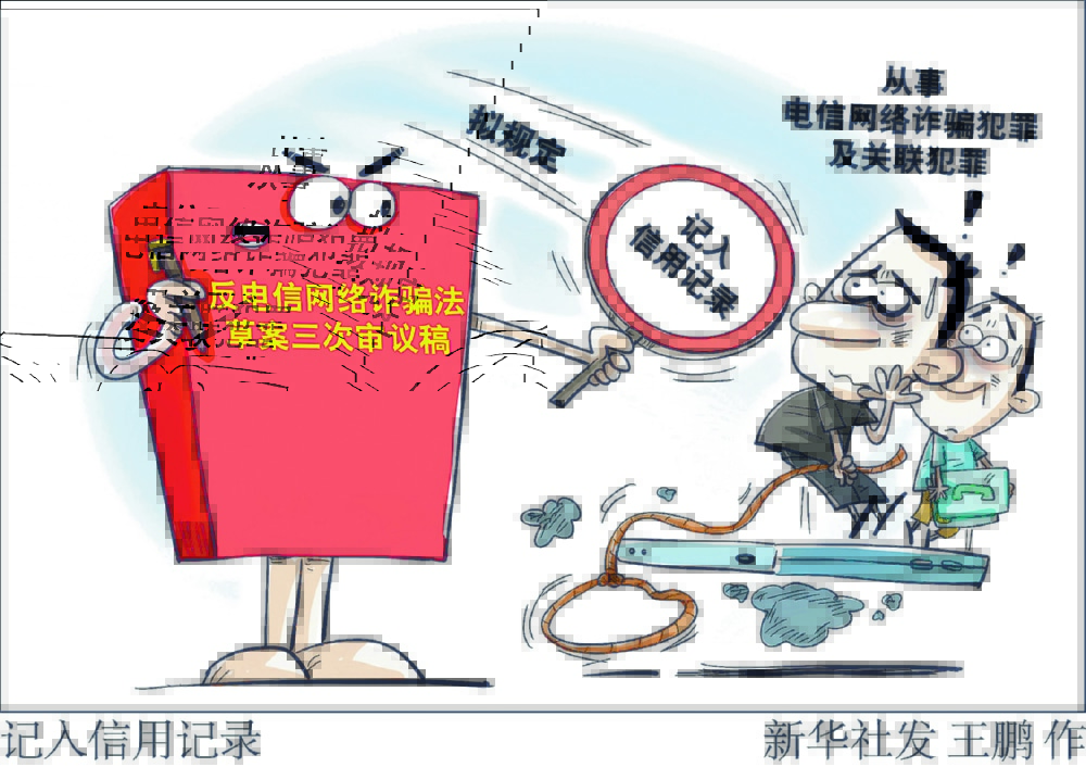8月26日从全国人大常委会法制工作委员会发言人记者会获悉,即将提请全国人大常委会会议审议的反电信网络诈骗法草案三次审议稿拟规定,对从事电信网络诈骗犯罪及关联犯罪的人员,可以按照国家有关规定记入信用记录,并采取相应的惩戒措施。 新华社发 王鹏 作