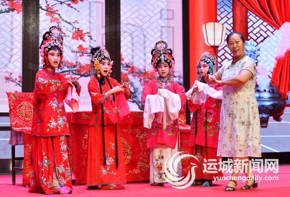 8月28日,在河北省青县“哈哈腔”传承示范基地,老师为小学员指导戏曲动作。