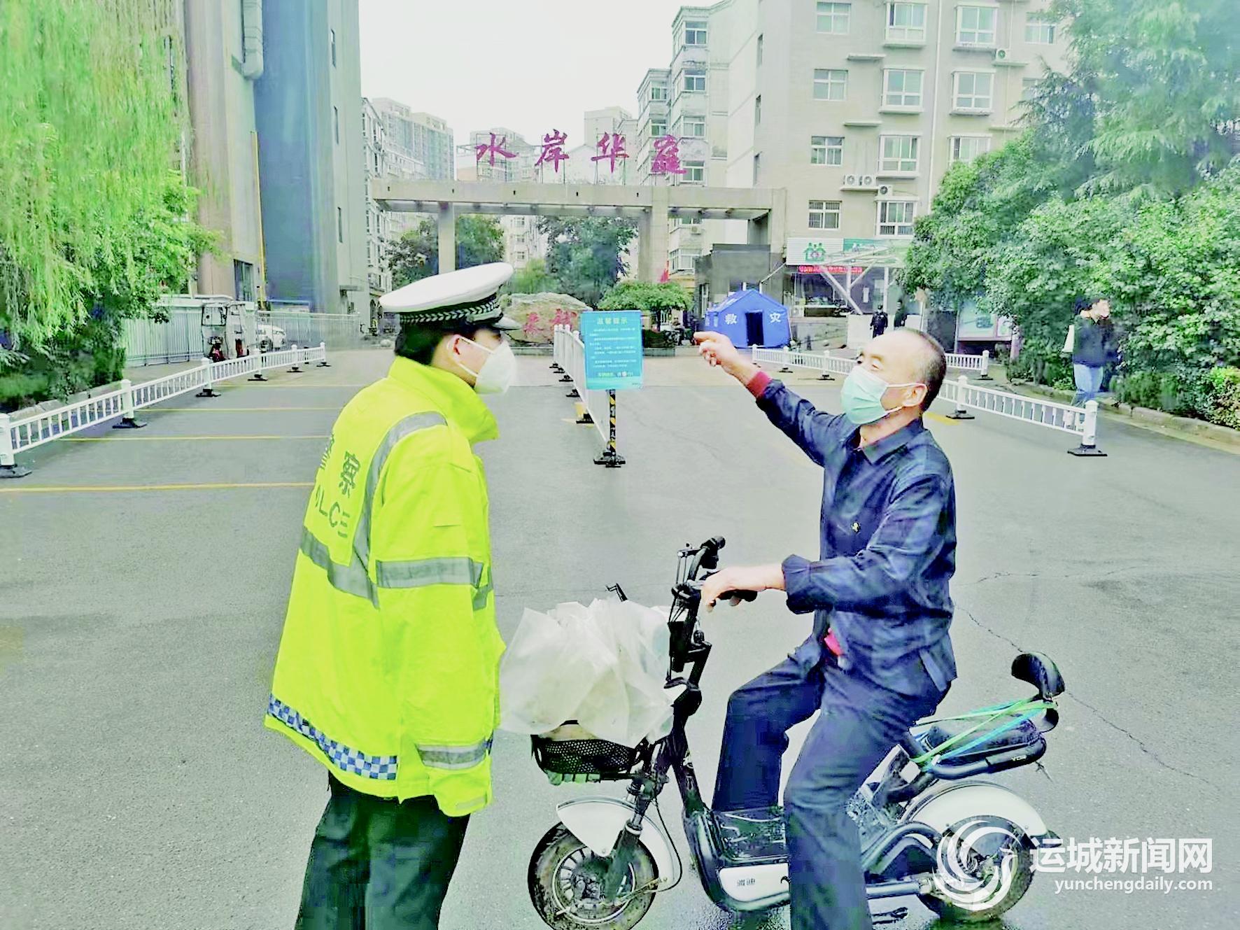 连日来,经过高强度的查处与劝导,中心城区大部分市民在骑电动自行车时都可以做到戴盔出行,但还是有一些人安全意识不强,“光头”出行。针对这种情况,盐湖交警大队创新整治方式,探索新路径,启动了“守住门,管住人,降事故,保平安”专项工作,在社区门口安排执勤民辅警从源头治理,及时劝导出行居民佩戴头盔,把好安全出行第一关,助力文明城市创建。