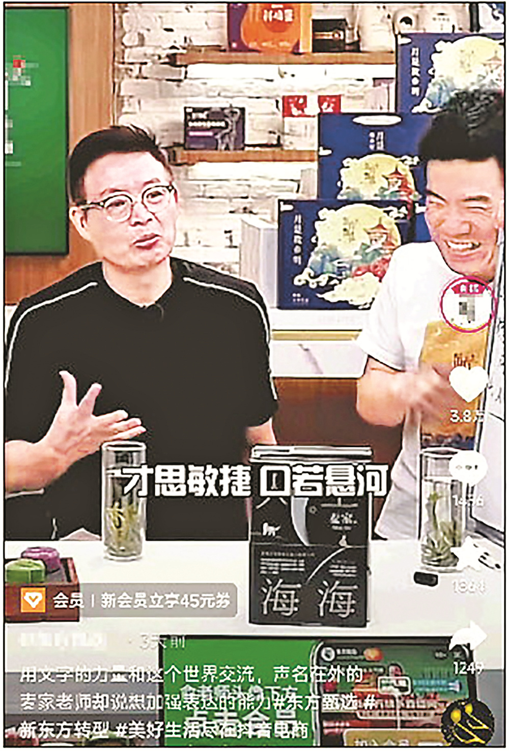 近日,茅盾文学奖获得者麦家做客带货直播间,与主播俞敏洪、董宇辉一起畅聊文学与人生故事。上播前,麦家向俞敏洪强调他不是来卖书的,只是聊聊文学与创作。麦家说,他也很忌惮,作家是不是应该只用文字与读者打交道,不应该抛头露面直播,但他看中的是俞敏洪的直播间一直在传播读书的魅力和读书的价值,一直想让大家爱上书,这太重要了。麦家一个多小时的直播,吸引了约40万人观看,长篇小说《解密》《风声》卖断货,数据显示《人生海海》在直播间销量突破8万册,成绩不容小觑。