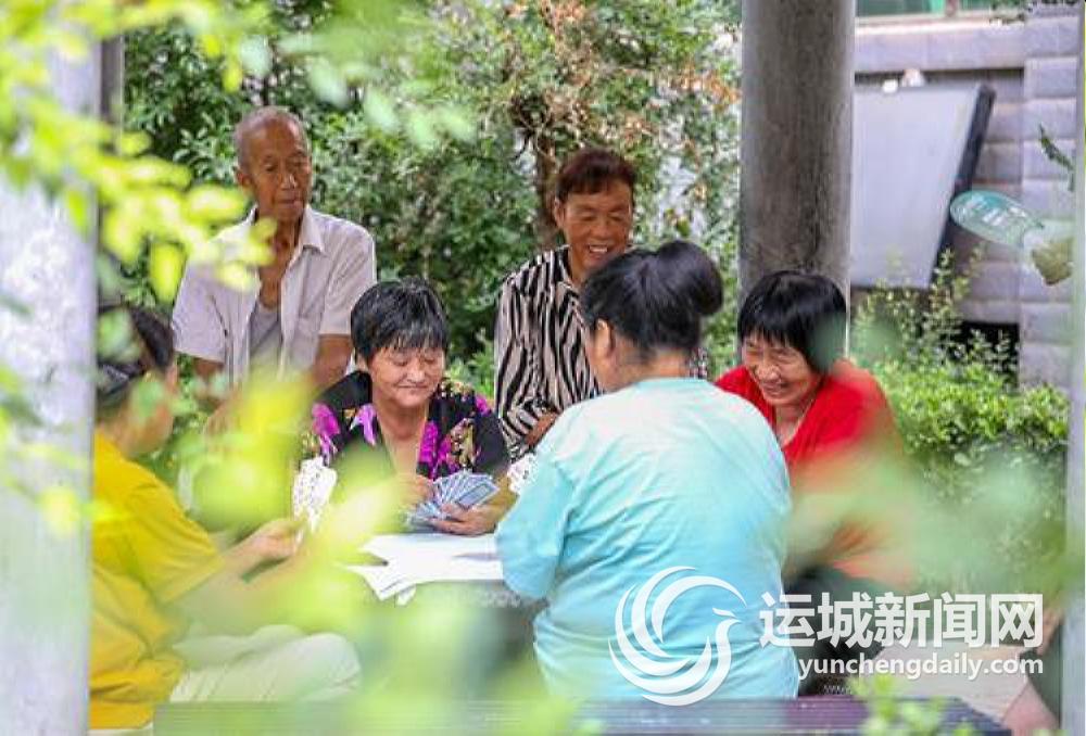 闻喜县幸福港湾搬迁安置区:景色宜人花香四溢令人醉 凉亭打牌自娱自乐笑声多