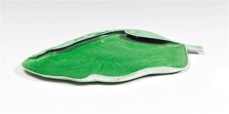 ▲景德镇窑绿釉秋叶形笔舔 (资料图)
