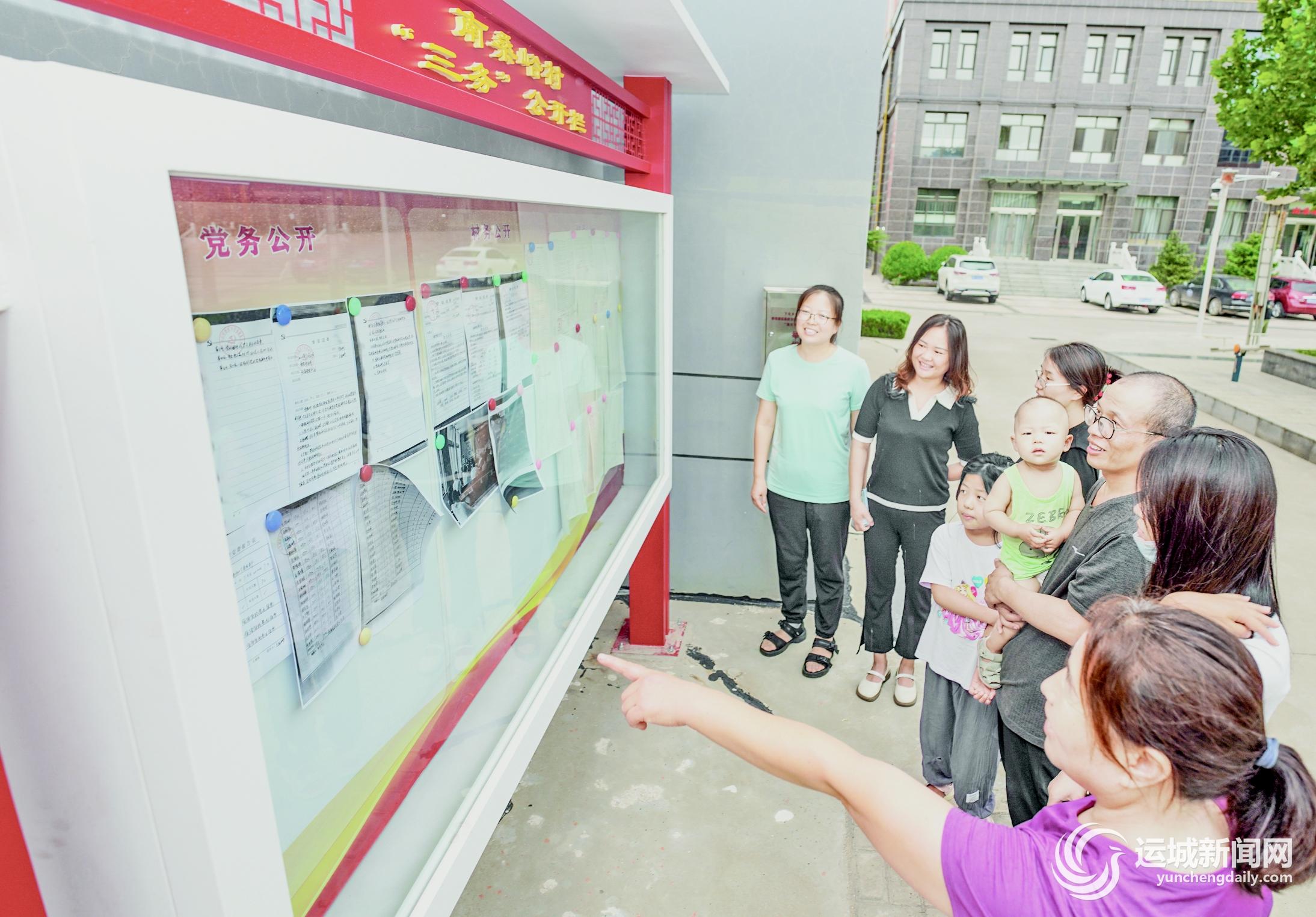 清廉社区:河津市将清廉河津建设融入全方位推动高质量发展全过程,开展清廉村居书画展、廉政“干板腔〞驻村表演等系列活动,出台村级“小微权力”清单、重点事项办理流程图,将村级“小微权力”关进制度的笼子。图为南桑峪村群众在观看清廉墙的公示内容。