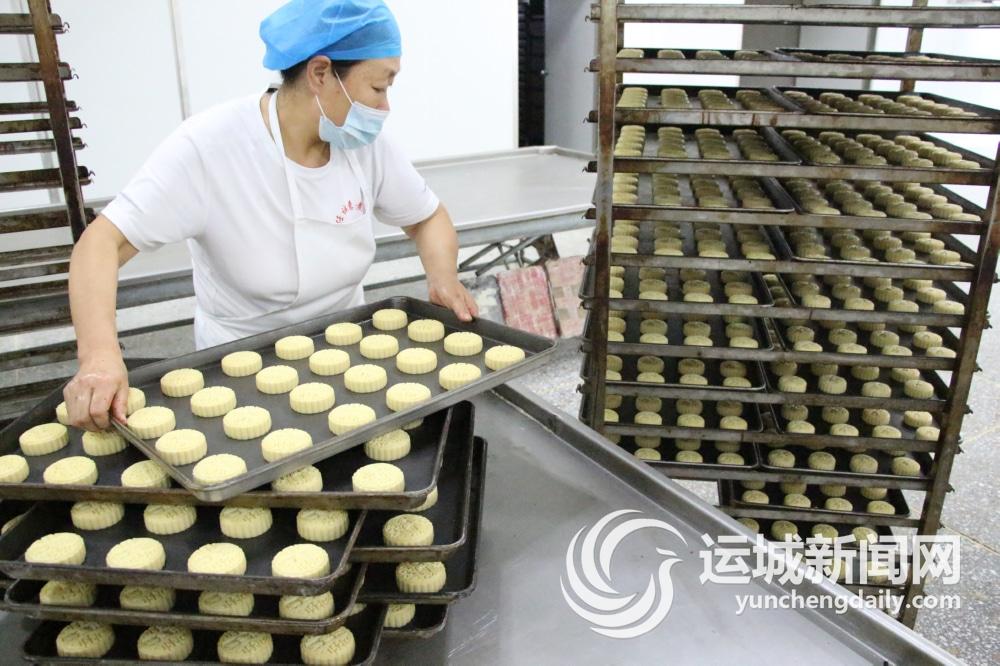 9月1日,闻喜县任诚意煮饼食品开发有限公司在做好疫情防控的同时,组织员工生产月饼。