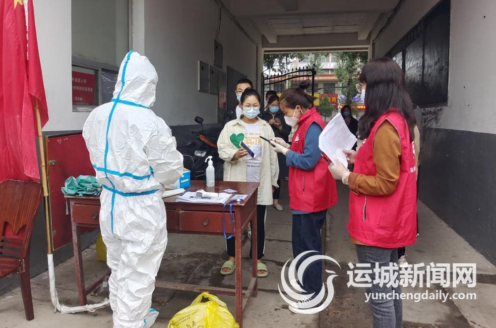图为夏县县委统战部党员干部在卡口执勤,帮助核酸检测人员扫码。姚中吉 赵欢珍 摄