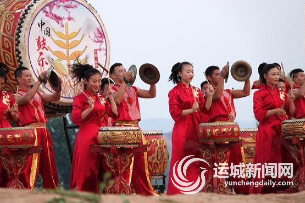 9月2日,在新绛县汾河岸畔,绛州鼓乐艺术团(高义钢铁)的鼓王和鼓手们,激情演绎新编国家级非遗绛州鼓乐经典曲目《普天同庆》。