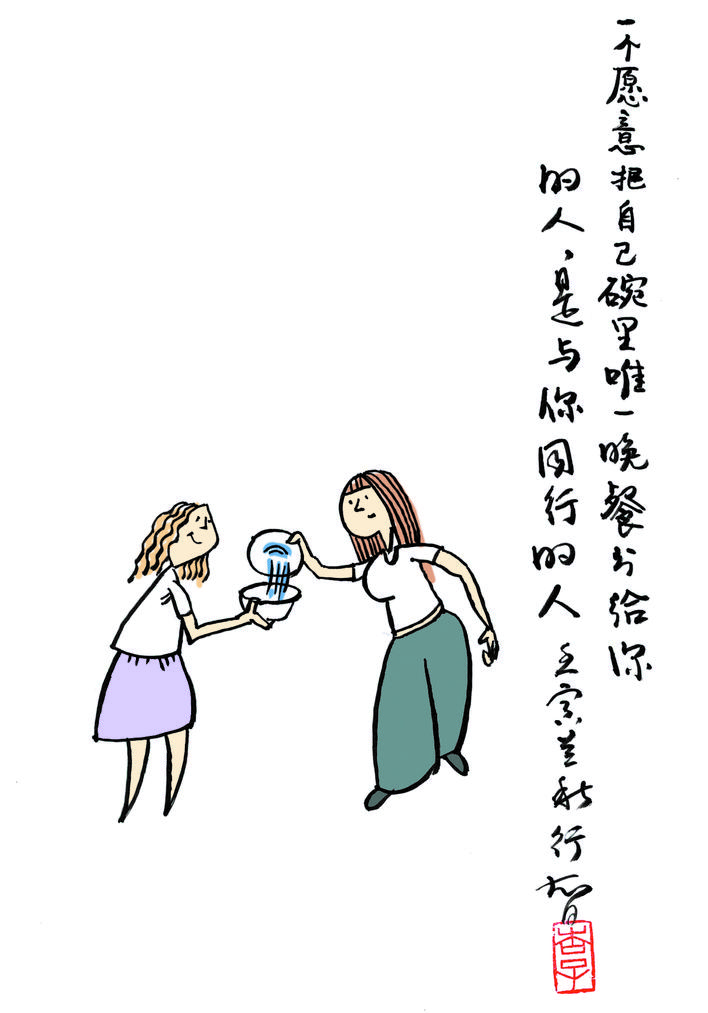 一个愿意把自己碗里唯一晚餐分给你的人,是与你同行的人。