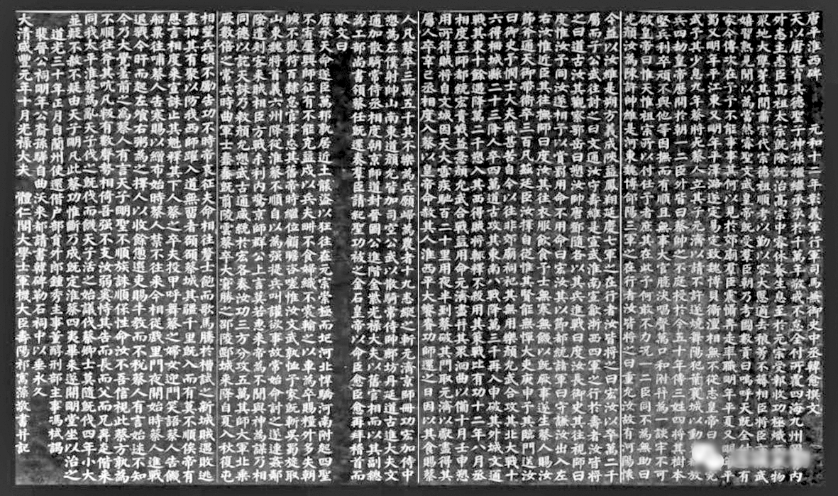 ▲平淮西碑拓片。《平淮西碑》被誉为“三绝碑”,名气很大。这通反映裴度功业的碑刻,不仅体现出裴度为人敬仰的气度,也代表着裴氏家族往昔的荣耀。裴度平定淮西后,唐宪宗亲诏韩愈撰文,记述平叛大捷。时任行军司马的韩愈根据所见所闻,如实记述,自然对身为主帅的裴度着墨较多。不料触怒了争功心切的皇亲国戚,先锋官李愬一纸御状上告宪宗,故《平淮西碑》被砸,由文人段文昌重述平叛经过。然而,原碑虽毁,文章却得以保存。宋蔡州知府陈王向又令人选石,重刻韩愈文。至清代,这块重立之碑也早已随着多次兵燹之灾不复存在。直到咸丰元年,军机大臣祁隽藻欣然命笔,重书韩愈文章。祁隽藻用了碑刻中少见的大楷,集颜、欧、柳、赵为一体,运笔流畅,苍劲有力。许多方家看后,认为此碑史、文、书俱为世罕见,故此碑又称“三绝碑”。