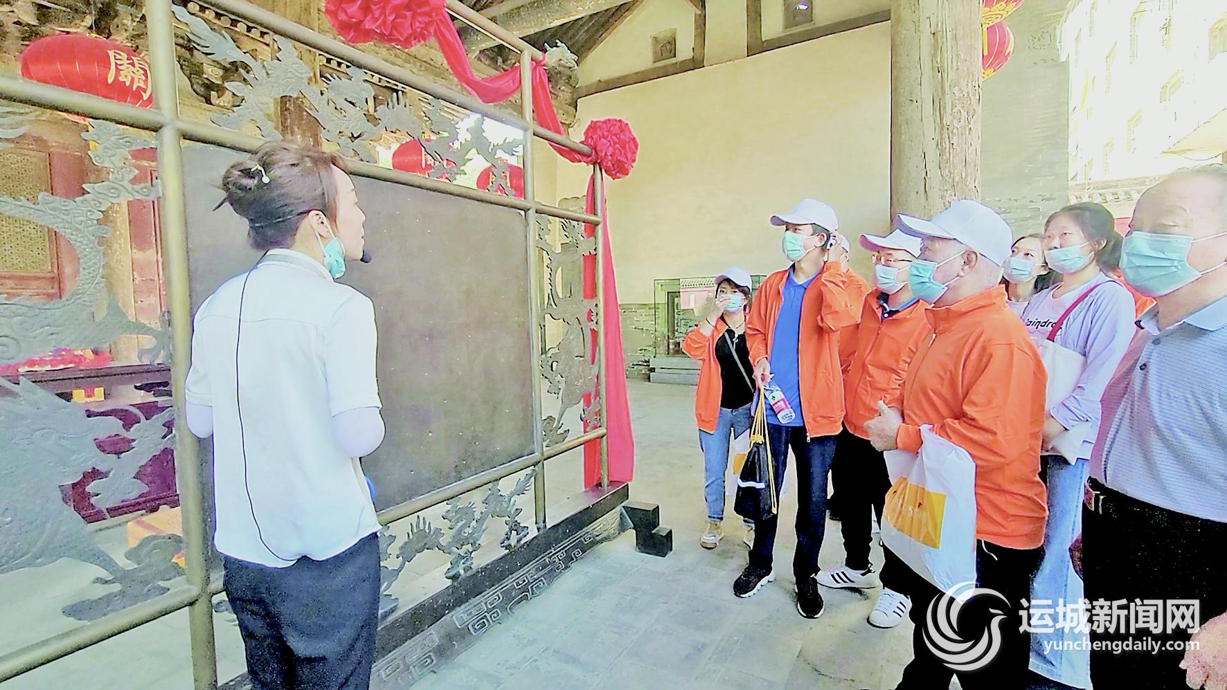 此次活动的第一站,全体人员来到了坐落在盬街街口的运城关王庙。工作人员为大家介绍了运城关王庙的历史、各类重点文物、建筑风格等,让大家在参观中充分感受其文化魅力。随后,一行人在工作人员的带领下,参观了我市的特色历史文化街区盬街。特色明显的晋南风格建筑、丰富精美的历史文化雕塑、趣味十足的方言盒子等,吸引了大家的目光。参观的同时,他们还不时与工作人员交流,了解更多信息。