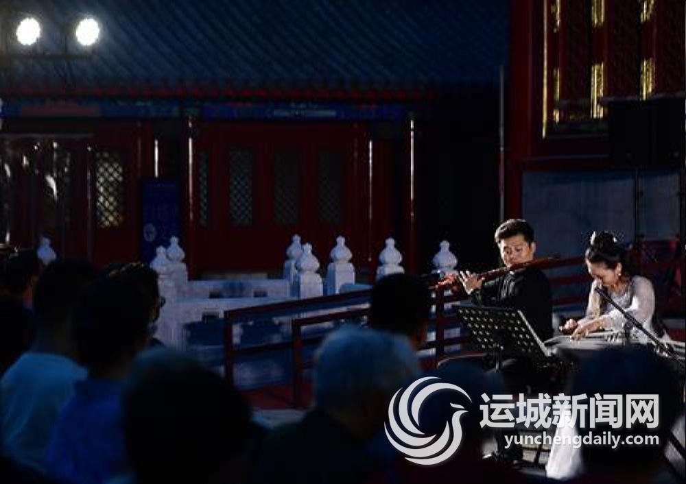 9月11日,民乐名家王溪(左)与吴茜在北京白塔寺内演出。
