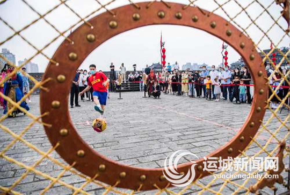 9月11日,在西安城墙景区,游客参加大唐运动会蹴鞠项目比赛。
