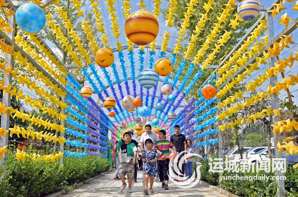 9月11日,游客在山东省烟台市芝罘区春田里休闲农场观光游玩。