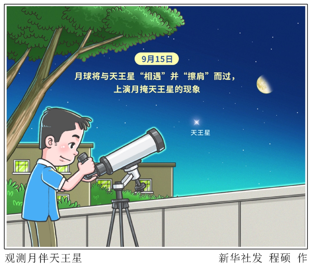 观测月伴天王星(漫画) 新华社发 程 硕 作