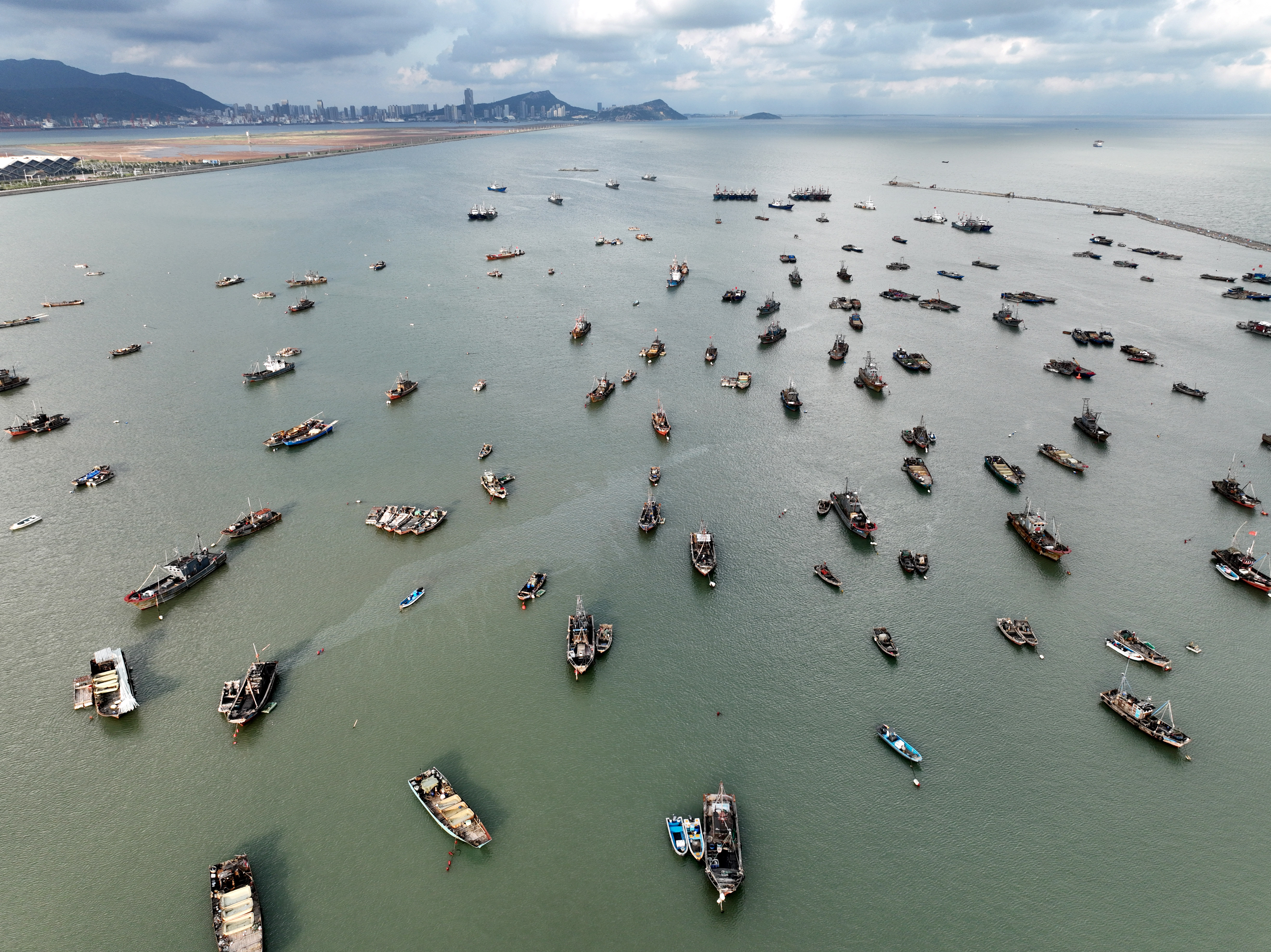 ▲9月13日,渔船停泊在江苏省连云港市连岛中心渔港码头港湾躲避台风。 中央气象台预计,今年第12号台风“梅花”将于9月14日下午至夜间在浙江温岭到舟山一带沿海登陆。13日,中央气象台将台风预警提升至橙色预警,相关水域的船只纷纷进港避风。 新华社发