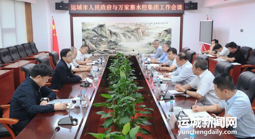 运城日报讯(记者 张 越)9月15日,市长储祥好与万家寨水务控股集团有限公司党委书记、董事长冯志君在太原举行工作会谈,就加快涑水河生态补水、推动项目建设、加强水利合作进行深入交流。万家寨水务控股集团党委副书记、副董事长、总经理兰康杰,党委委员、副总经理常建忠,市委常委、副市长董旭光,市政府秘书长王红波参加。