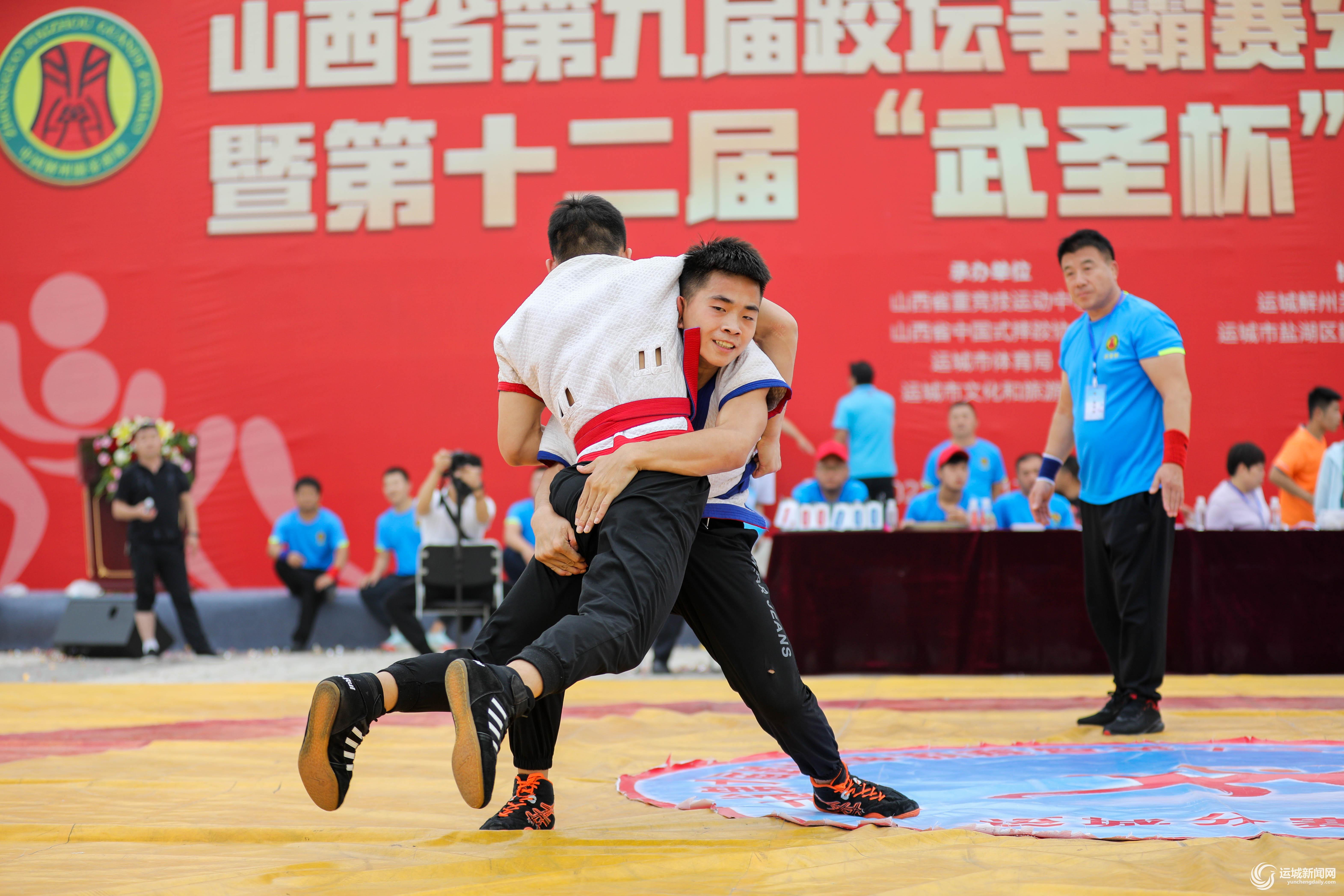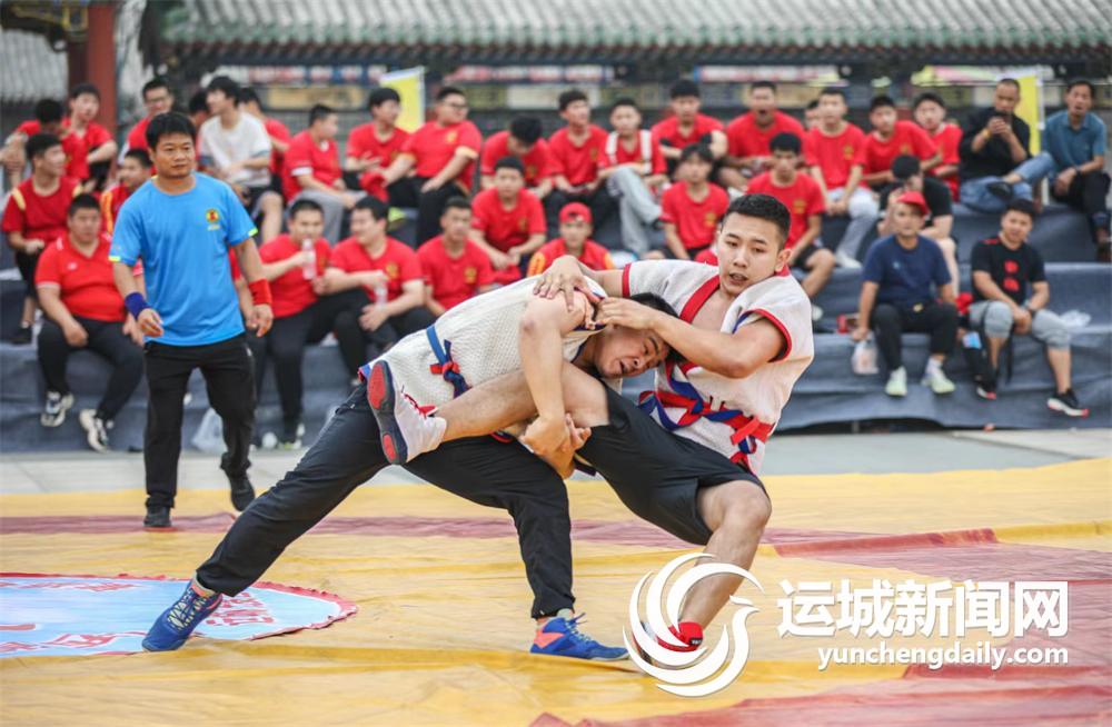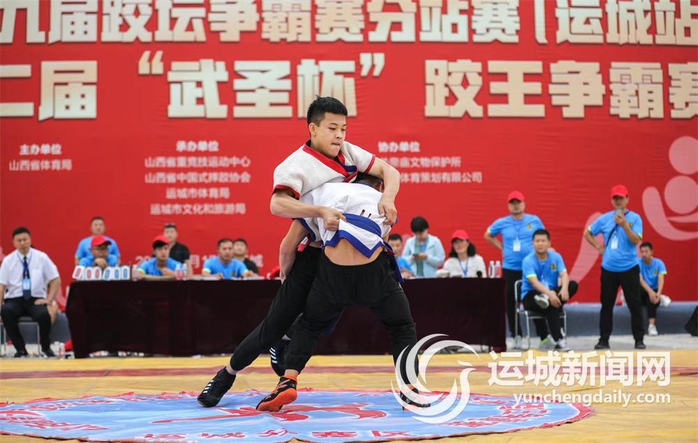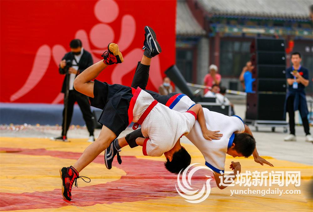 ▲9月17日,山西省第九届跤坛争霸赛(运城站)暨第十二届“武圣杯”跤王争霸赛,在盐湖区常平关帝庙文化广场盛大举行。精彩的跤坛大战,为开幕在即的山西省第八次旅游发展大会暨第33届关公文化旅游节增温添彩。 记者 杜磊 摄