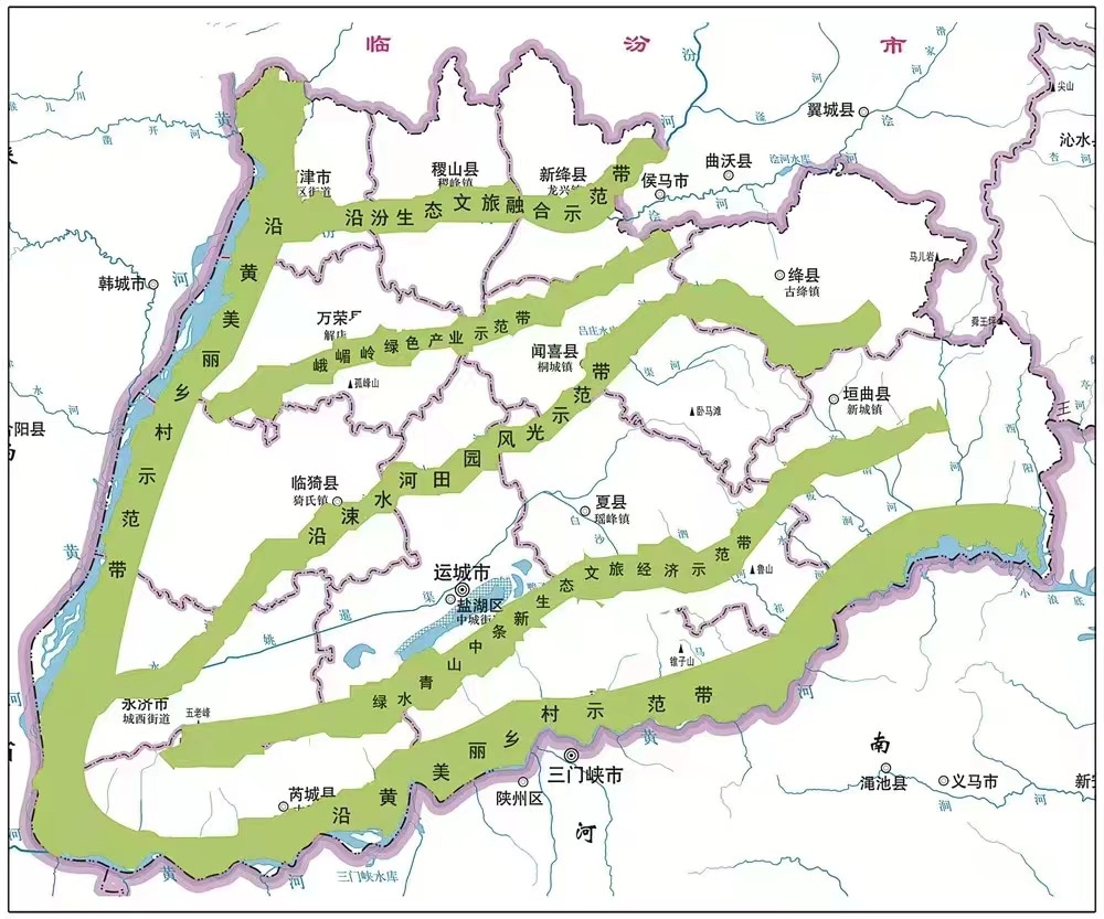 运城晚报讯(记者 王永俊)去年以来,运城市委、市政府认真贯彻习近平总书记关于黄河流域生态保护和高质量发展重要讲话和重要指示精神,坚定不移践行习近平生态文明思想。全市按照省第十二次党代会赋予的“创建黄河流域生态保护和高质量发展示范区”的新使命,率先编制出台了《创建黄河流域(运城段)生态保护和高质量发展示范区规划》,不断丰富内涵、拓宽外延,并全域谋划,高标准打造“五条绿色走廊”,即沿黄美丽乡村示范带、沿汾生态文旅融合示范带、沿涑水河田园风光示范带、绿水青山中条新生态文旅经济示范带、峨嵋岭绿色产业示范带。