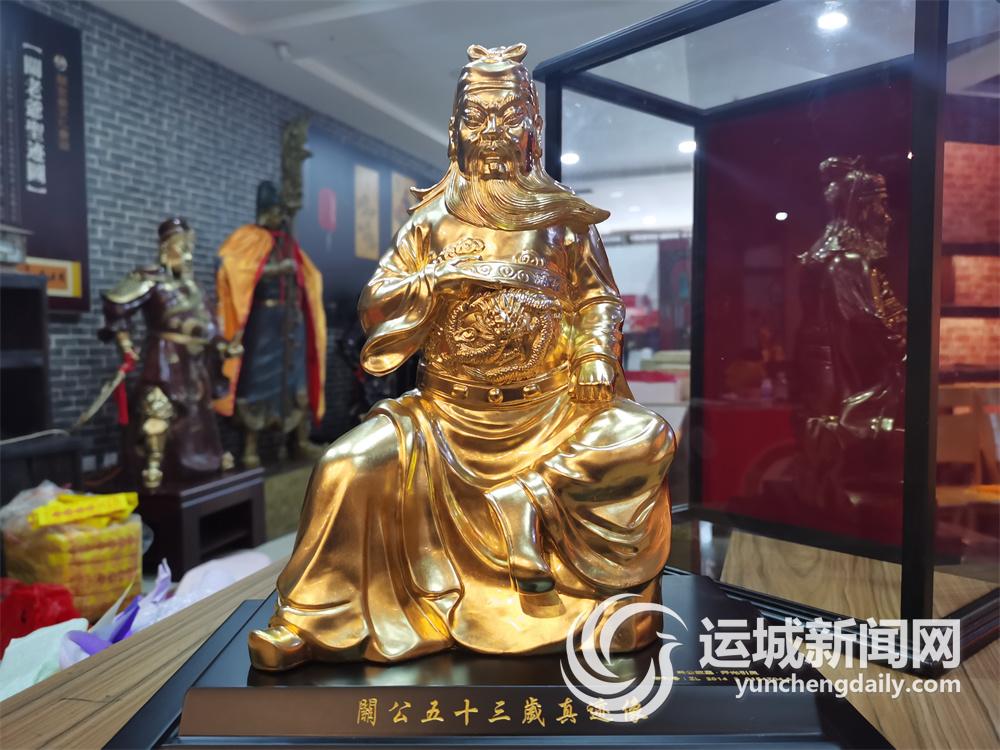 该雕像取材于盐湖区解州镇西元村出土的“关公五十三岁全身坐像”石碑,碑刻上的关公坐像图线条流畅、神态生动,十分罕见。为弘扬关公文化、讲好关公故事,山西关老爷文化创意有限公司组织雕塑团队,讨论设计方案、反复制作模型,才有了这尊关老爷金像。