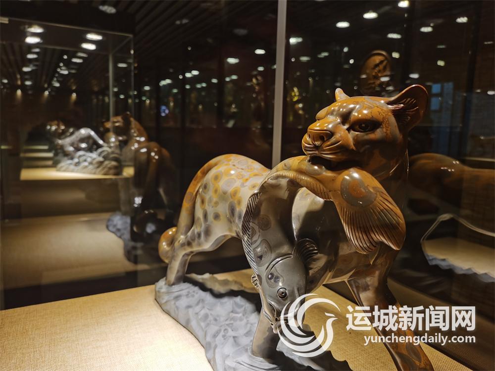 ▲这是绛县瑞来石艺精雕细刻的金钱石雕作品《东猎西渔》。金钱石是绛县境内一种特有的石头。多年来,瑞来石艺对其研究、创作,打造出了具有运城地域文化特色的艺术品。这些金钱石雕作品寓意深厚、典雅别致,深受藏家喜欢。