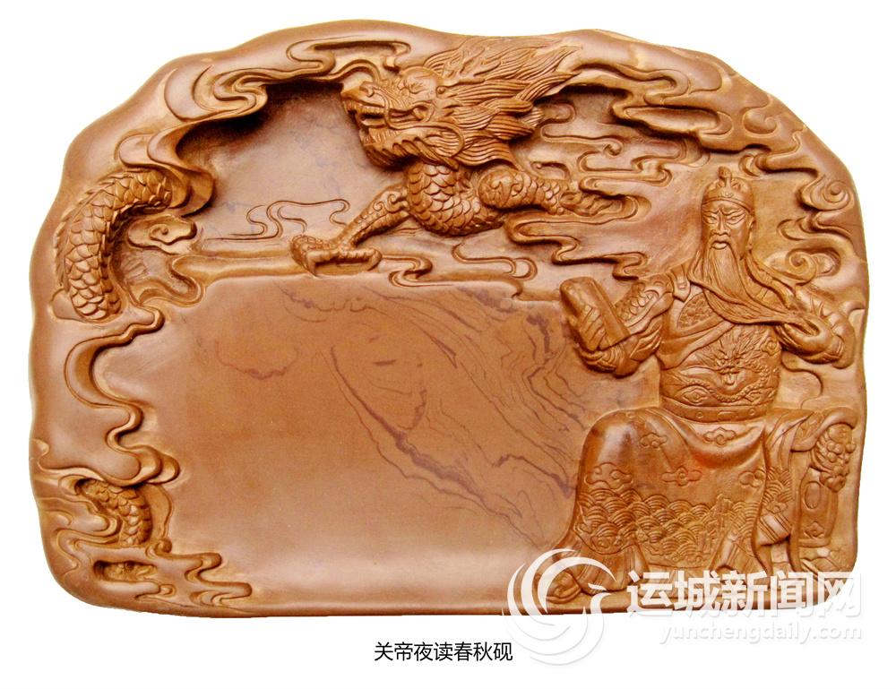 ▲这是新绛县绛州澄泥砚研制所精心制作的“关公系列”澄泥砚。关公夜读《春秋》、单刀赴会、华容道义释曹操等人们耳熟能详的故事,通过艺术化的手法处理,以澄泥砚为载体,更生动形象地呈现在人们面前。