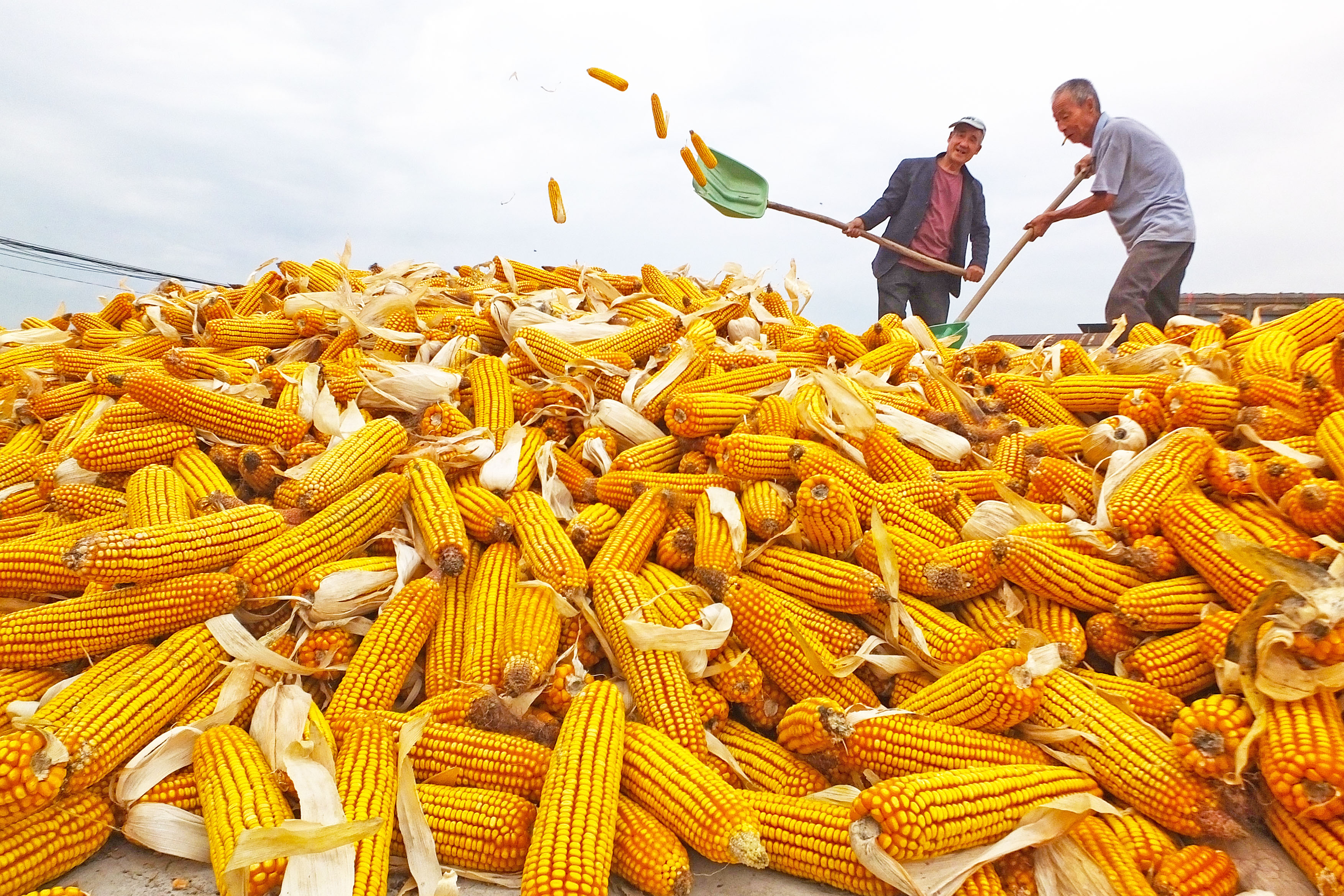 9月19日,在新绛县三泉镇曙光村,村民加紧晾晒玉米。 特约摄影 高新生 摄