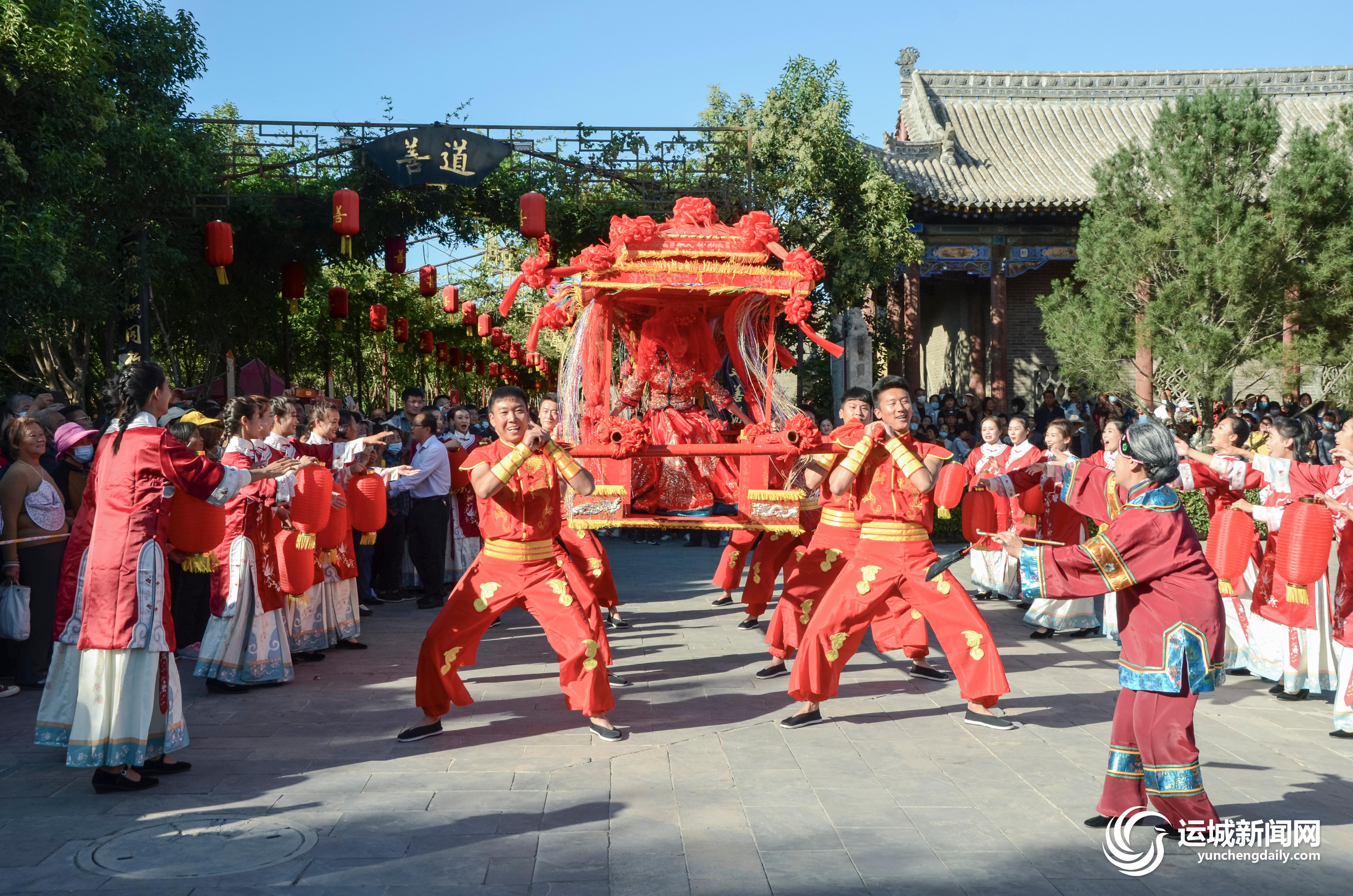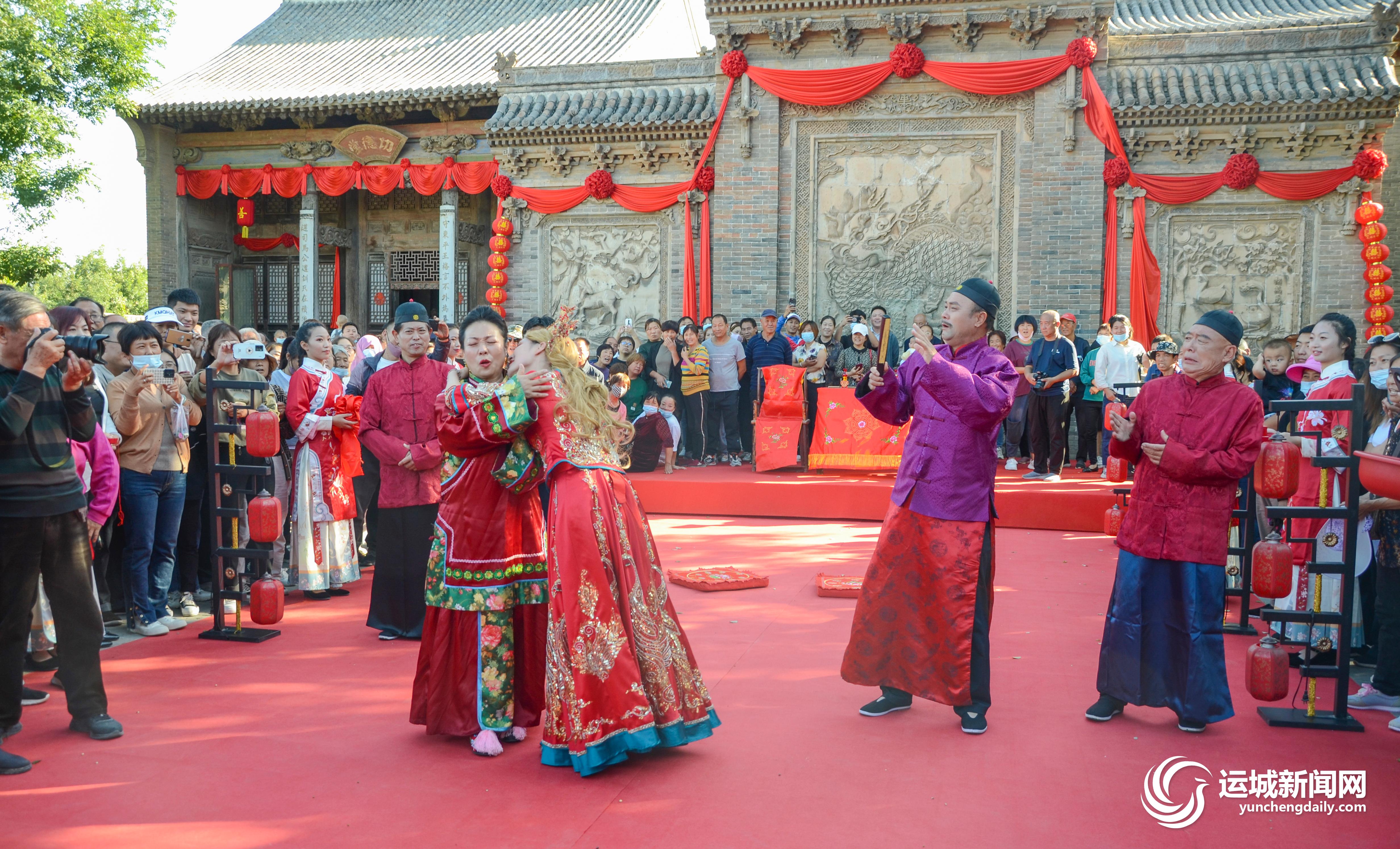 ▲9月22日,万荣县李家大院景区内,该县组织编排的情景剧《娶妻》受到游客欢迎。