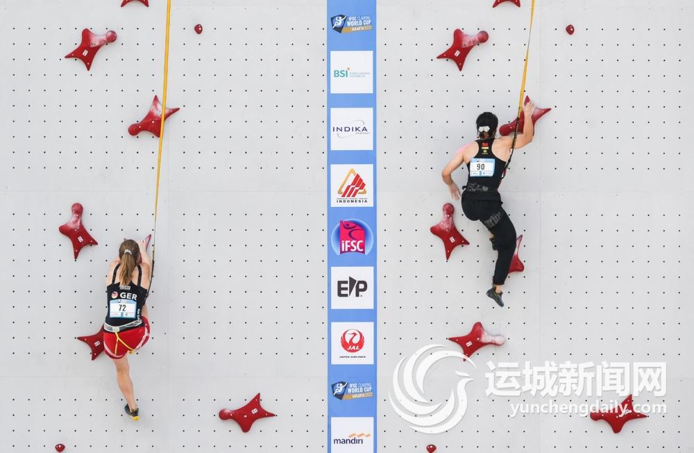 当日,2022年国际攀联世界杯速度赛在印度尼西亚雅加达迎来收官战,中国队选手邓丽娟夺得女子项目金牌, 中国队选手曹龙获得男子项目铜牌。
