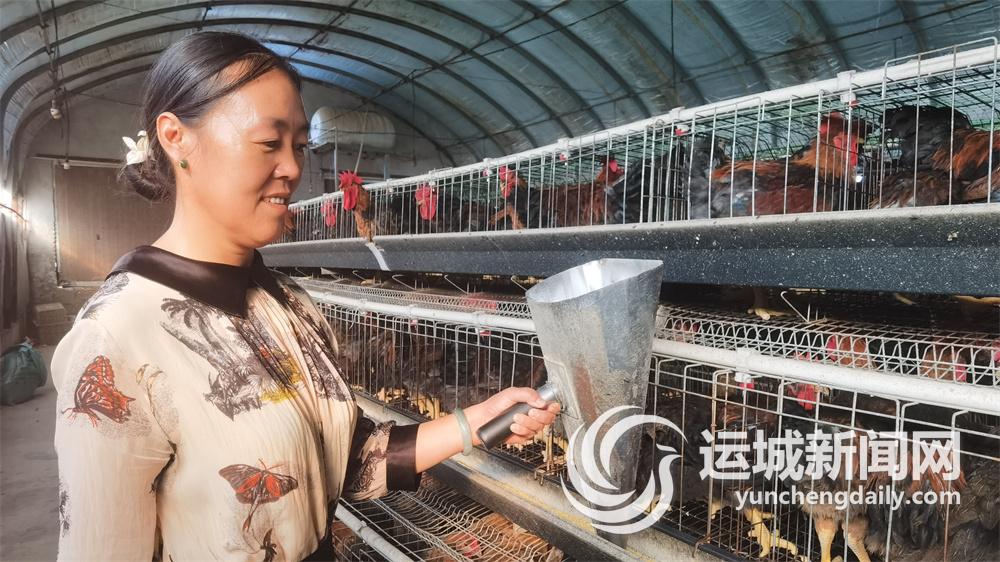 9月17日,夏县胡张乡如意上晁村村民李英明在鸡舍忙碌。