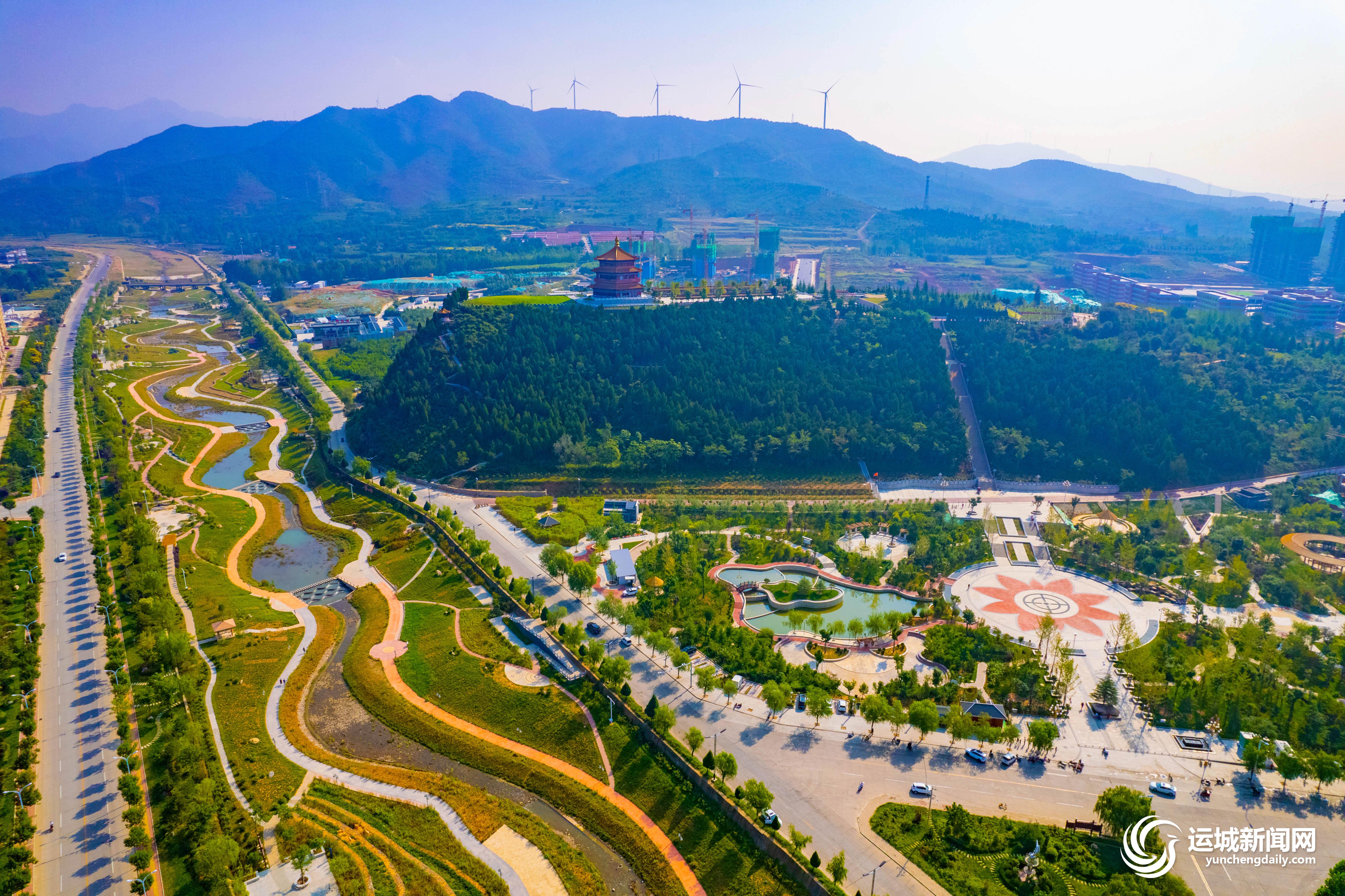 帝舜公园、青年山公园与亳清河县城段风景融为一体