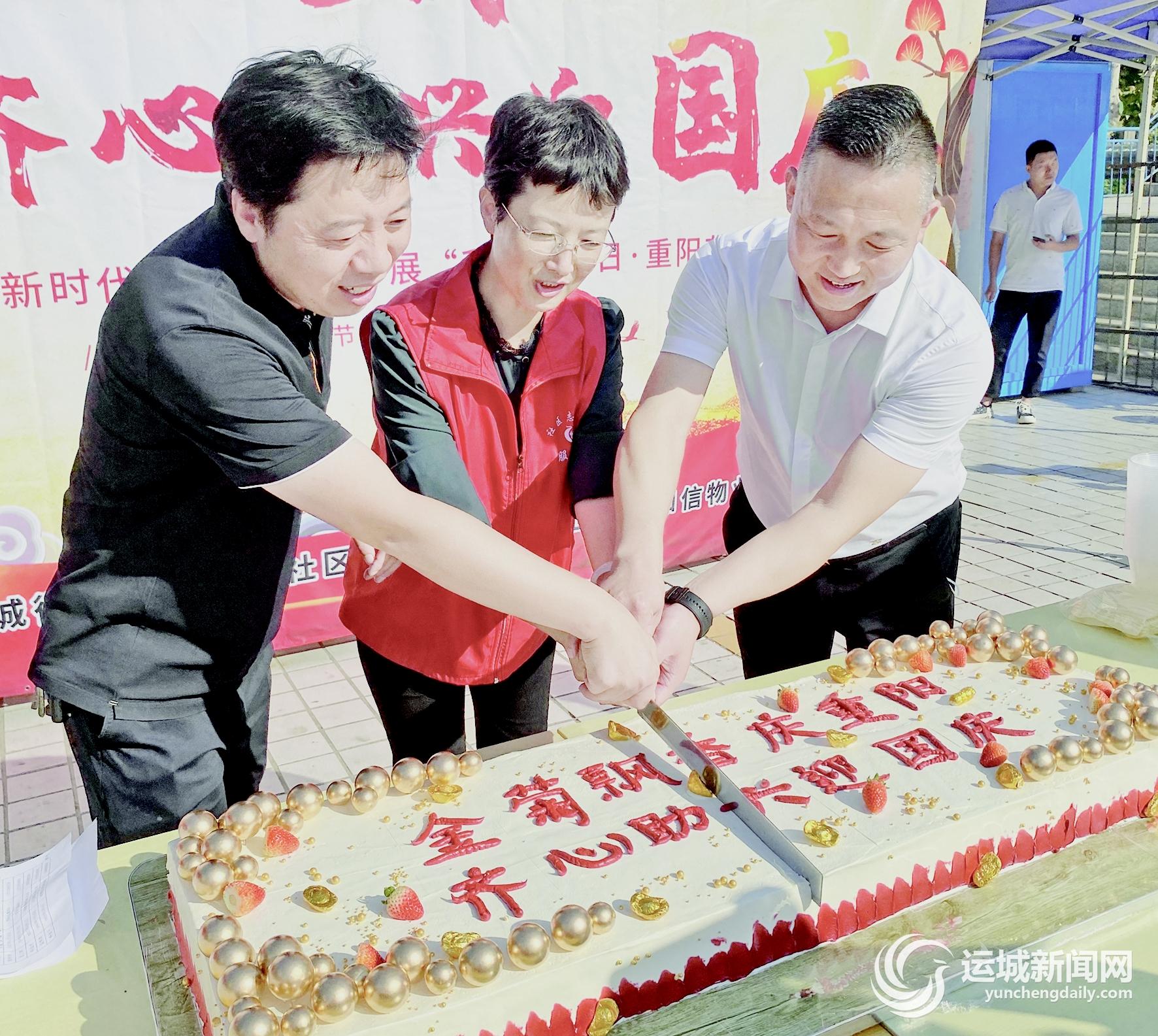 运城晚报讯(记者 崔萌)9月29日,盐湖区东城街道禹都花园社区联合市委宣传部、禹都花园小区物业,开展了“金菊飘香庆重阳,齐心助兴迎国庆”主题活动,辖区65岁以上老年人一起唱歌、吃生日蛋糕,欢乐迎国庆。