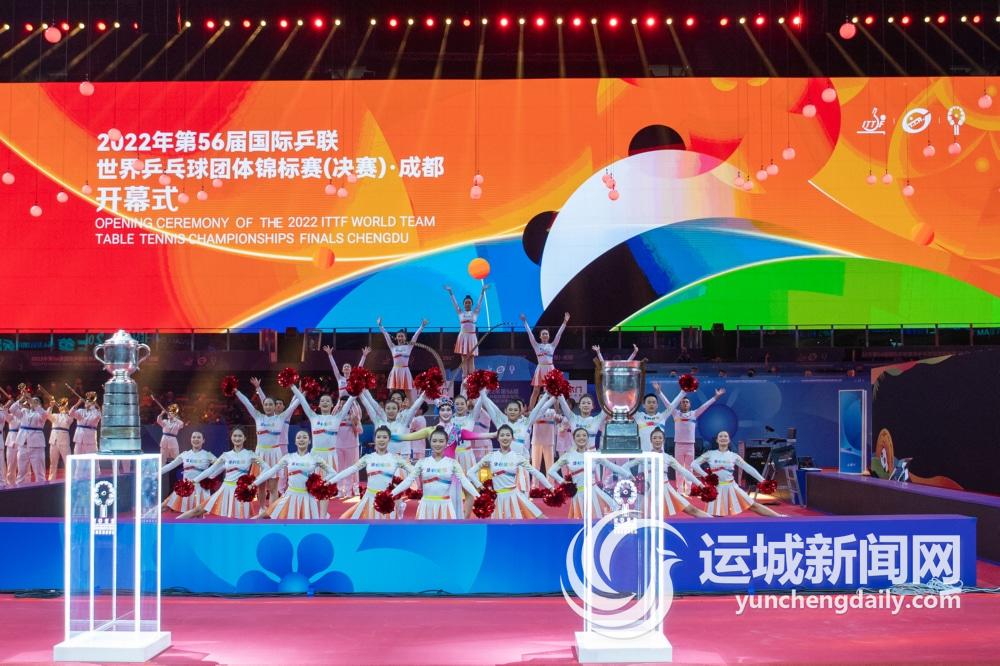 当日,第56届世界乒乓球团体锦标赛(决赛)开幕式在成都高新体育中心体育馆举行。