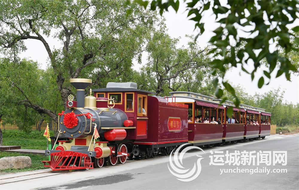 近日,游客在稷山县国家板枣公园乘坐观光小火车游览,领略千年板枣林秀美风光。