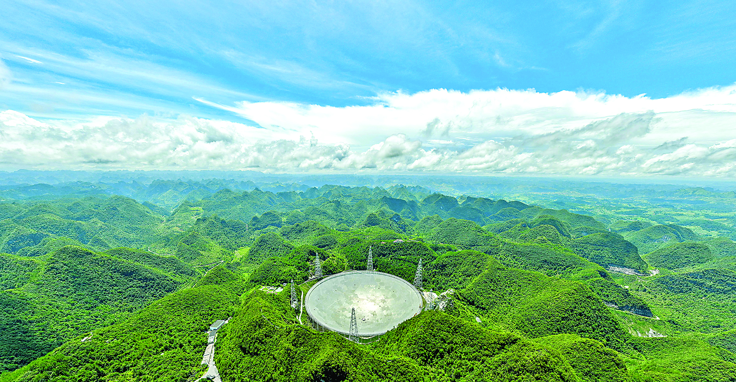 ▲“中国天眼”全景(2022年7月21日摄,维护保养期间拍摄)。 新华社记者 欧东衢 摄