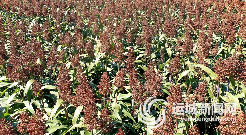 10月9日,夏县胡张乡柳村400多亩红高粱随风摇曳,喜迎丰收。