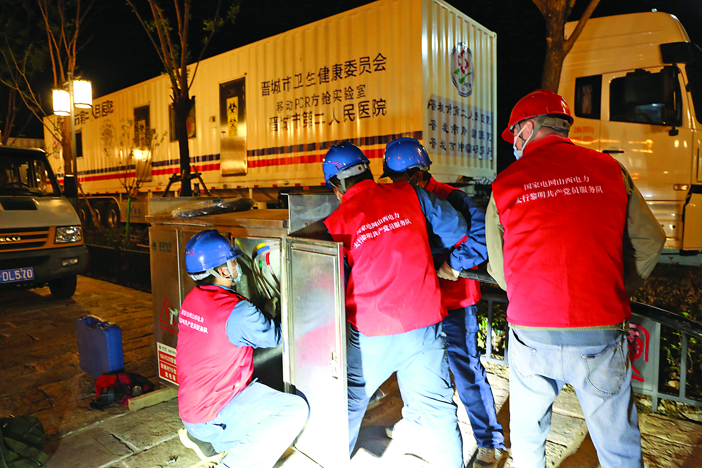 本报讯 10月11日中午12时30分,经过15个小时的奋战,国网运城盐湖区供电公司如期完成移动方舱实验室电源建设及送电任务,为辖区疫情防控提供了坚强的电力保障。