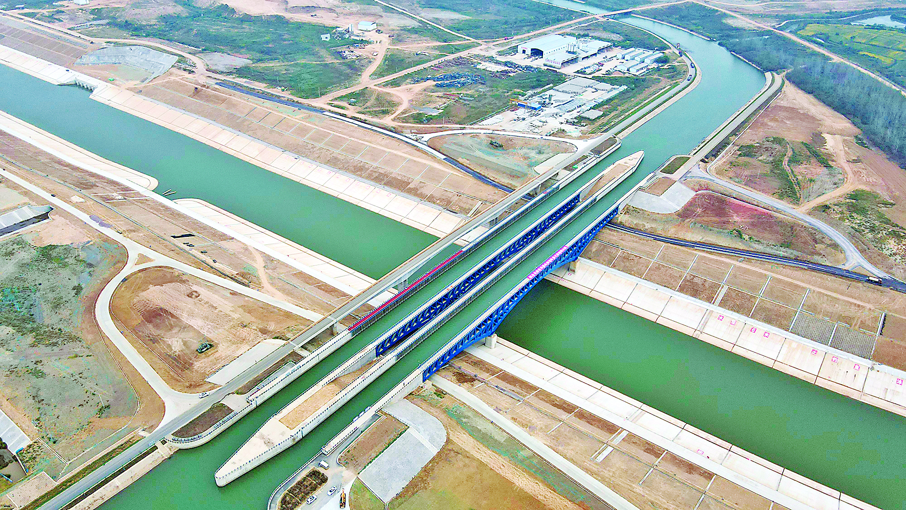 9月6日,世界单跨最大的通水通航钢渡槽——引江济淮工程淠河总干渠钢结构渡槽首次通航。淠河总干渠与引江济淮渠道形成“河上有河船上有船”的水上立交奇观。