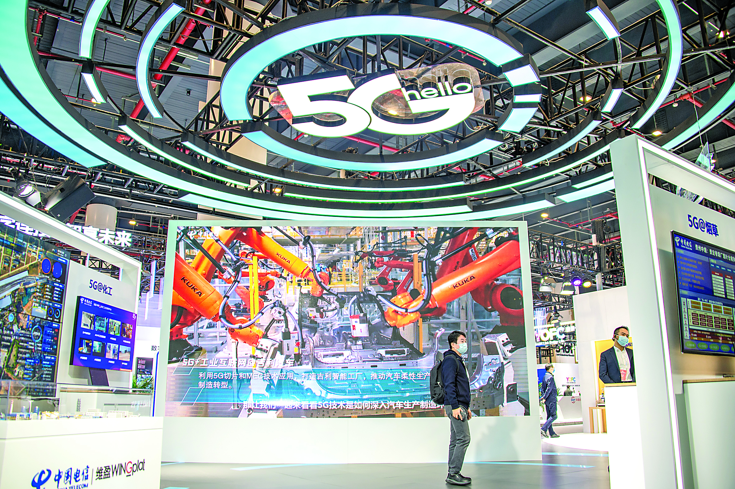 这是在武汉中国光谷科技会展中心拍摄的“5G+工业互联网成果展”现场(2021年11月20日摄)新华社发