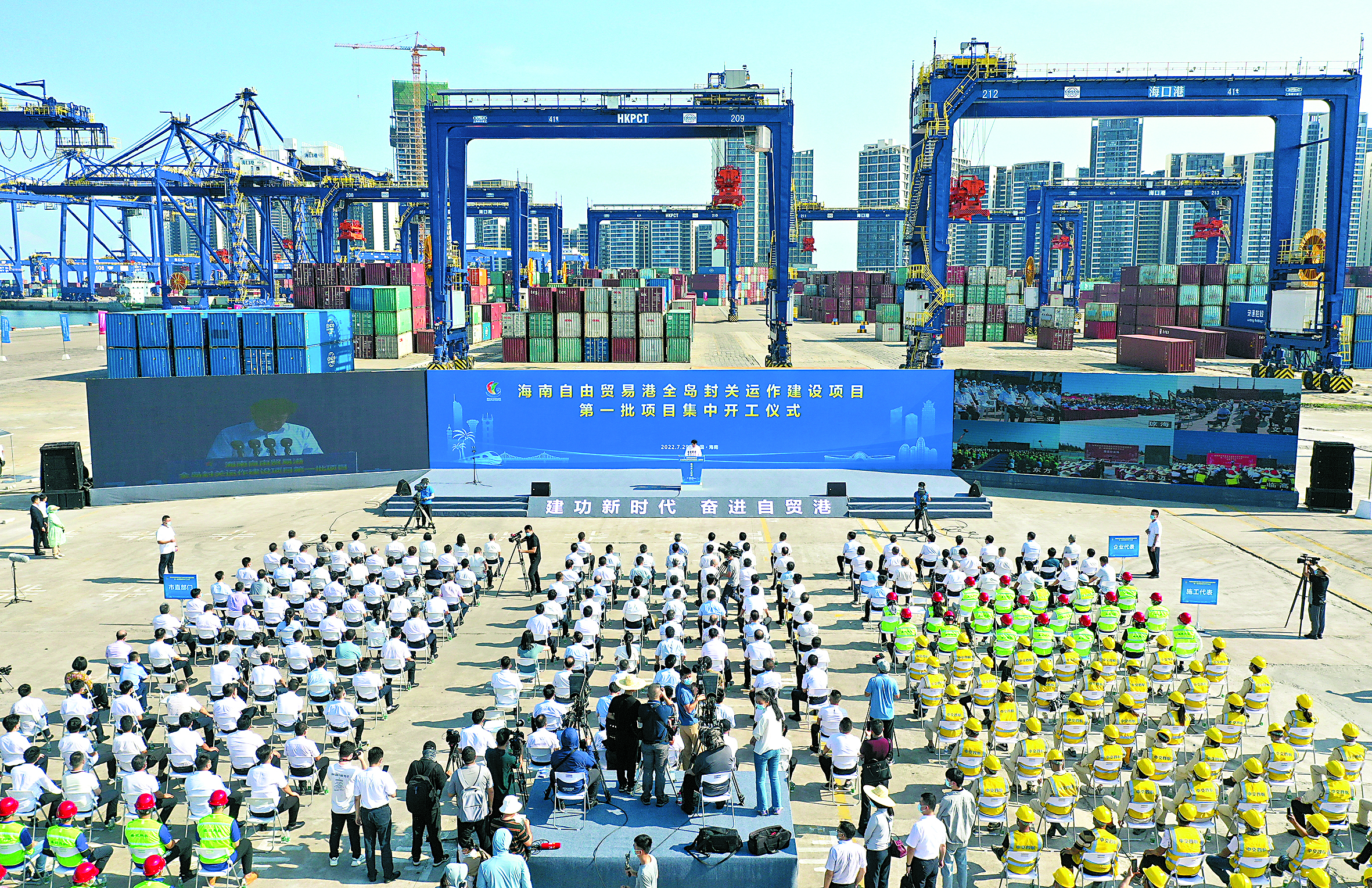 这是海南自由贸易港全岛封关运作建设项目第一批项目集中开工仪式现场(2022年7月29日摄)新华社记者 郭程 摄