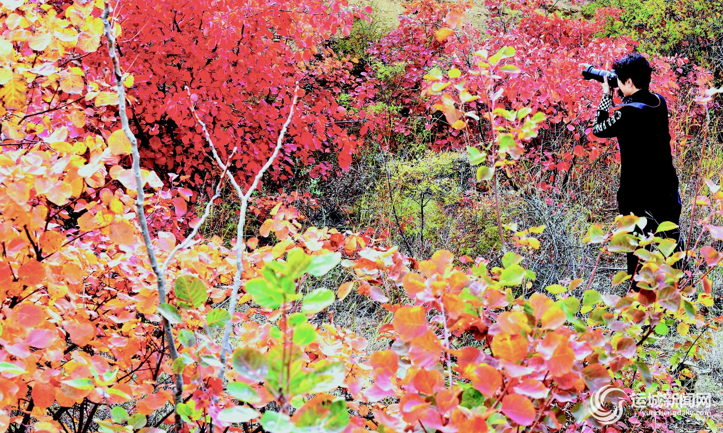 垣曲县多年来坚持抓实天然林保护工作,大山植被得以休养生息。深秋时节,该县南北两山披上了“红装”。图为10月17日摄影爱好者在山上拍摄红叶。 特约摄影 崔松良 摄