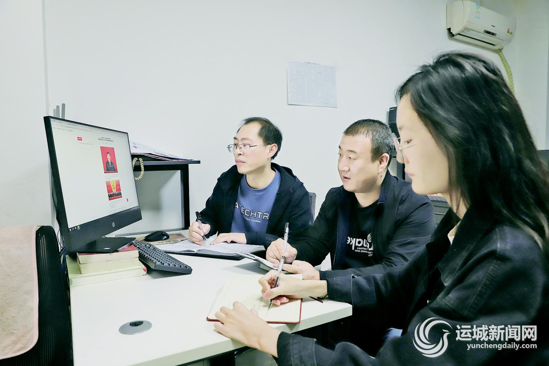 连日来,河津市广大党员干部群众认真学习领会党的二十大报告精神,并结合自身工作实际开展热烈讨论,用报告精神武装头脑、指导实践、推动工作,为现代化河津建设贡献智慧和力量。图为该市党员在学习党的二十大报告。 特约摄影 韩国栋 摄