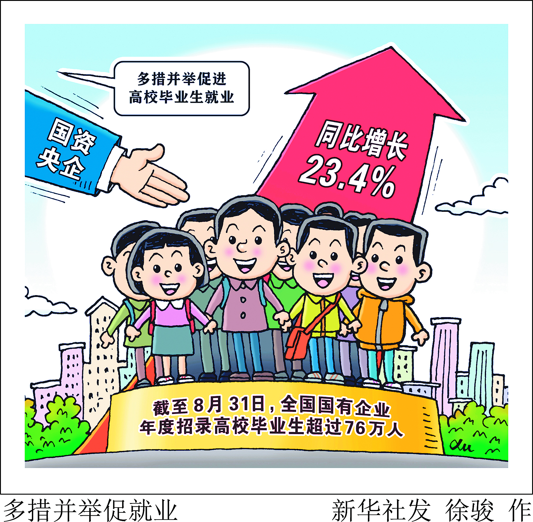 启动夏季招聘、线上线下结合、挖掘岗位潜力……今年以来国资央企多措并举促进高校毕业生就业,招录2022届高校毕业生工作取得显著成效。截至8月31日,全国国有企业年度招录高校毕业生超过76万人,同比增长23.4%。