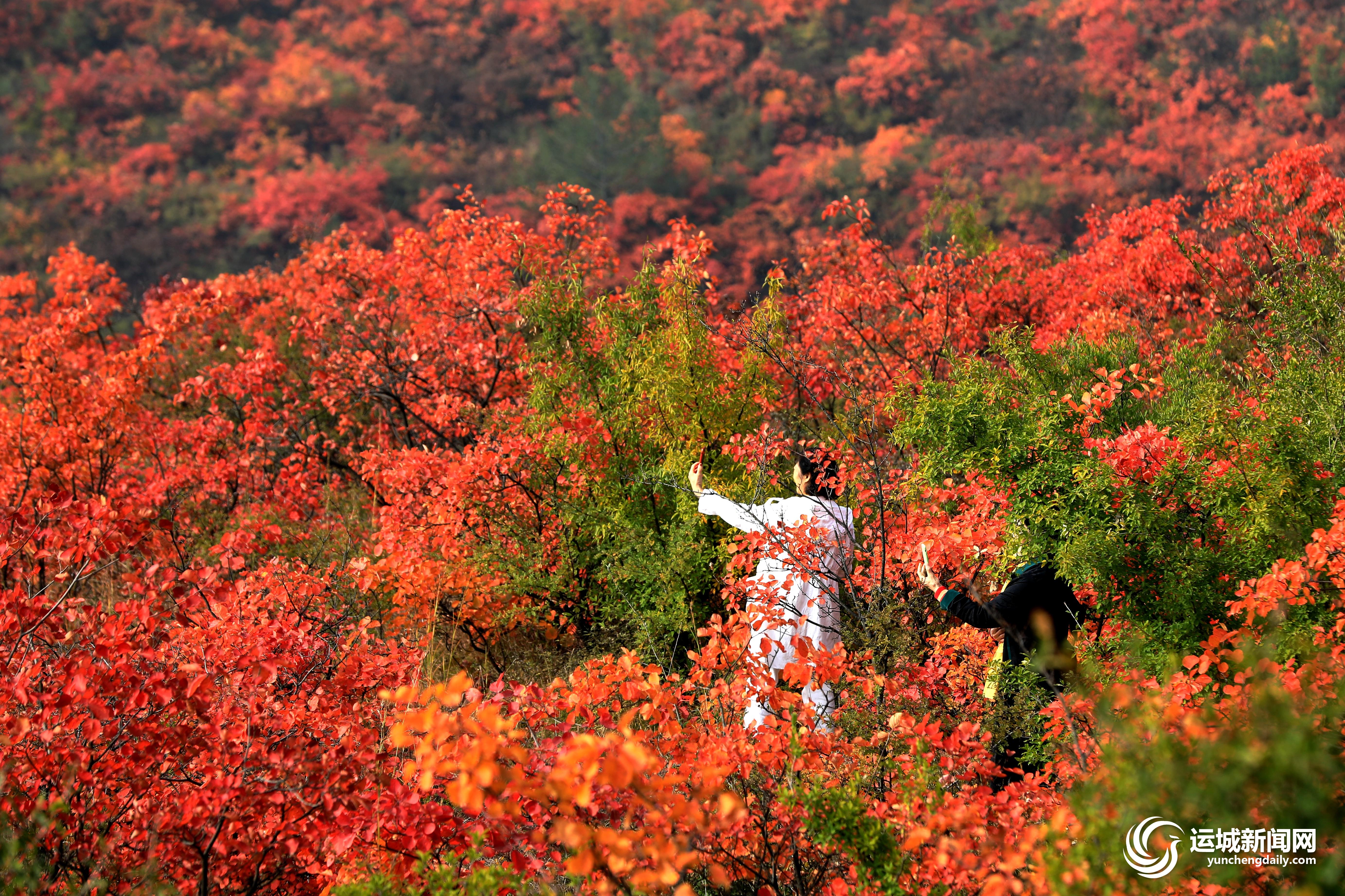 十月深秋惹人醉,红叶又染马泉沟。正值深秋,平陆县马泉沟的红叶进入最佳观赏期,满山红叶争芳斗艳,吸引游人驻足拍照。 特约摄影 杨新智 摄