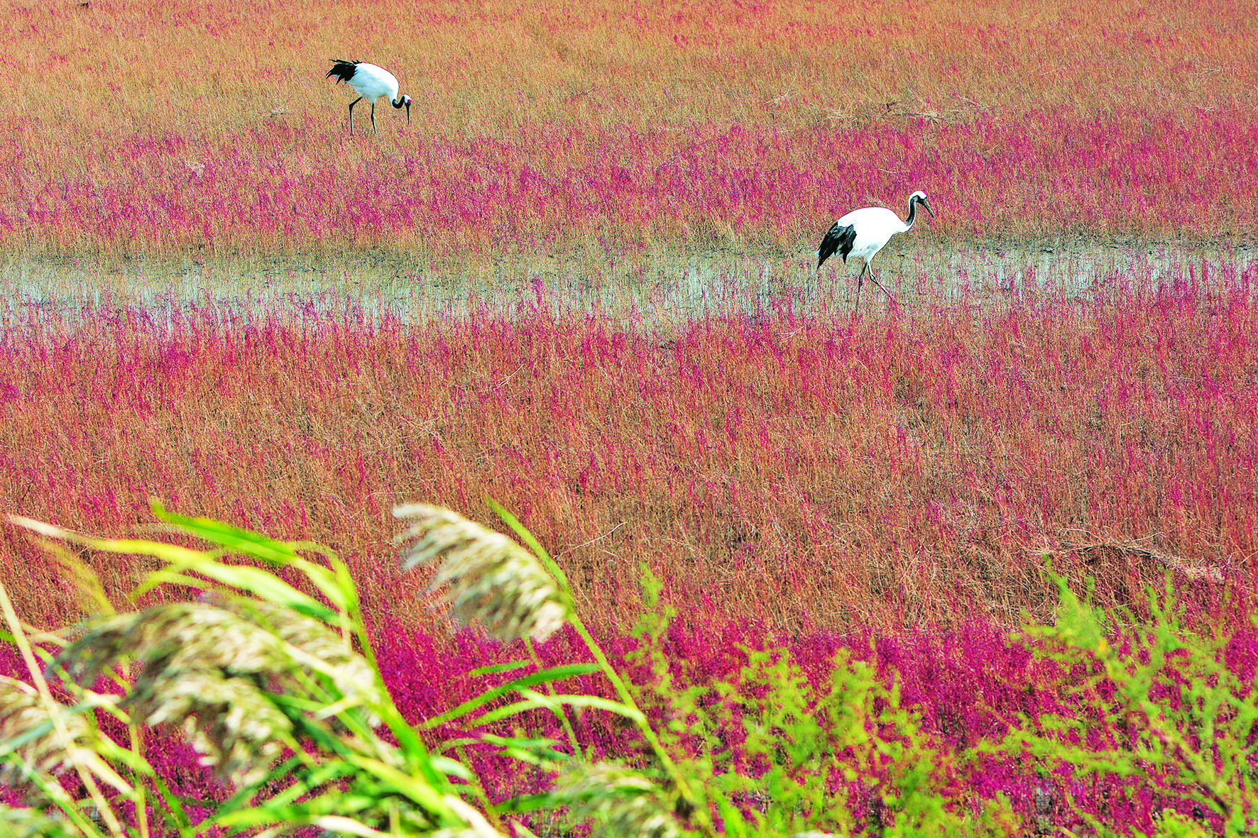 位于辽宁盘锦的辽河三角洲湿地包括芦苇沼泽、浅海海域、河流库塘、水稻田等湿地类型。湿地内分布各类野生动物。特殊环境孕育出的碱蓬草铺满滩涂,一到秋天这里就成了“红色海岸线”。 新华社记者 王乙杰 摄